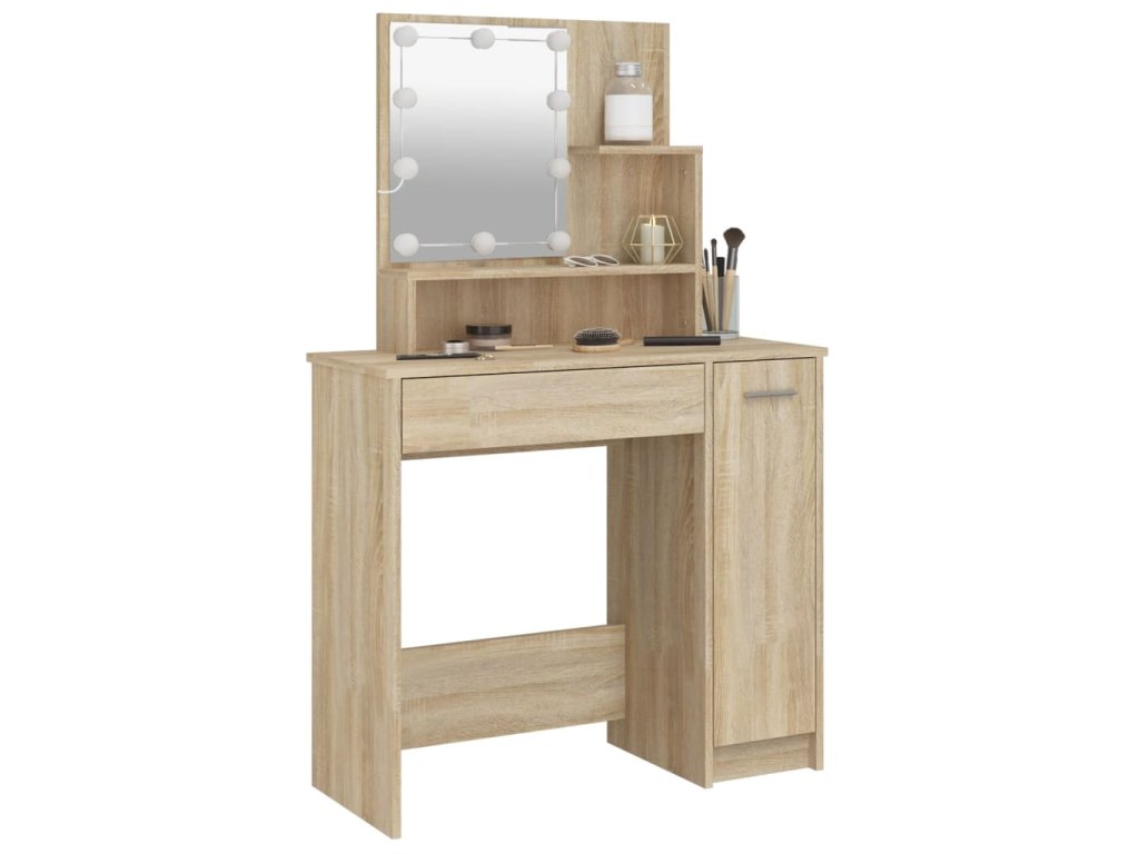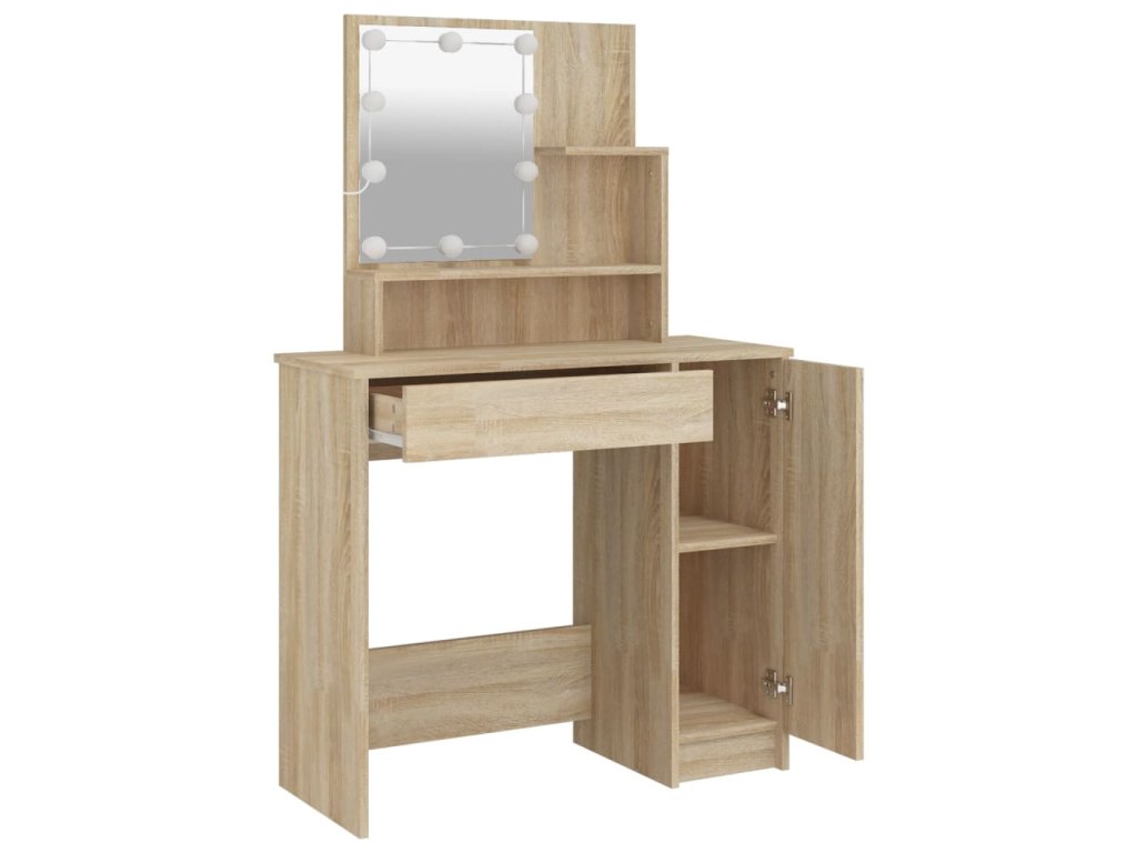 - Dostatok úložného priestoru: Tento kozmetický stolík má na stole otvorené police, zásuvku a bočnú skrinku, čo poskytuje dostatok úložného priestoru, aby ste mali dôležité veci dobre usporiadané a na dosah ruky.