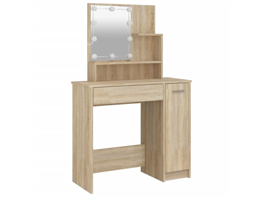 - LED svetlo: Kozmetický stolík má aj LED žiarovky s USB, na ktorých sa dajú jednoducho prepínať režimy z teplej farby svetla až po studenú bielu. Dodané LED žiarovky okolo zrkadla osvetlia aj vašu krásu.