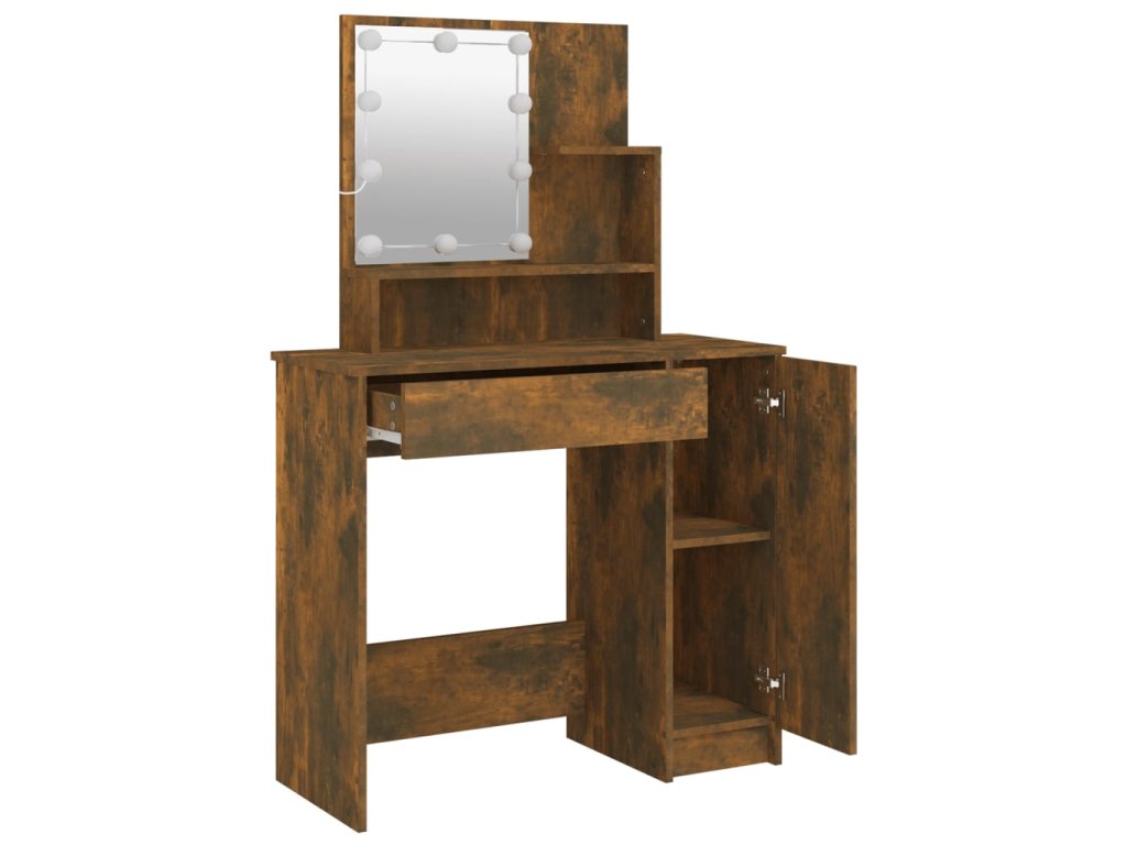 - LED svetlo: Kozmetický stolík má aj LED žiarovky s USB, na ktorých sa dajú jednoducho prepínať režimy z teplej farby svetla až po studenú bielu. Vhodné LED žiarovky okolo zrkadla osvetlia aj vašu krásu.