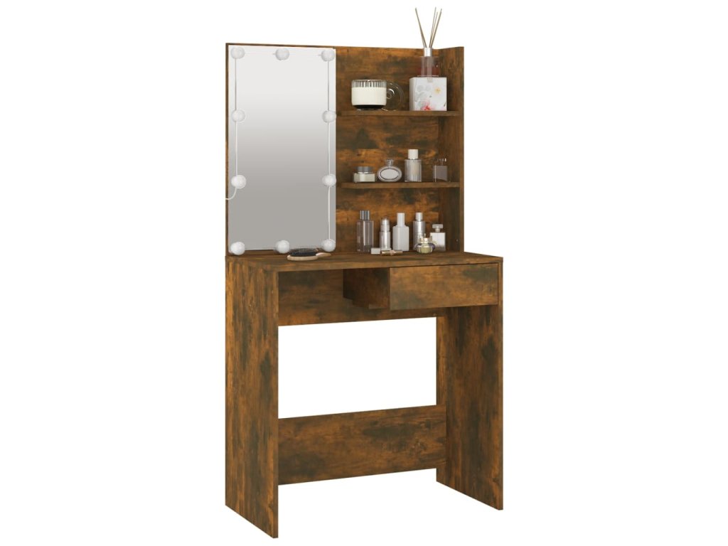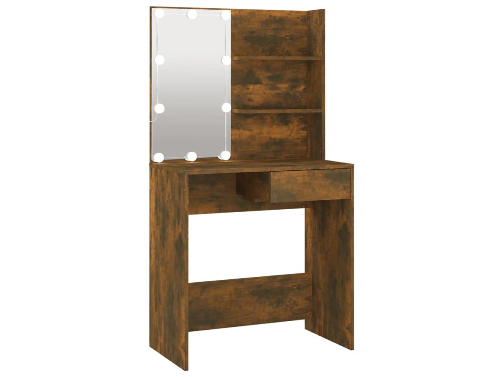 - LED svetlo: Kozmetický stolík má aj LED žiarovky s USB, na ktorých sa dajú jednoducho prepínať režimy z teplej farby svetla až po studenú bielu. Vhodné LED žiarovky okolo zrkadla osvetlia aj vašu krásu.