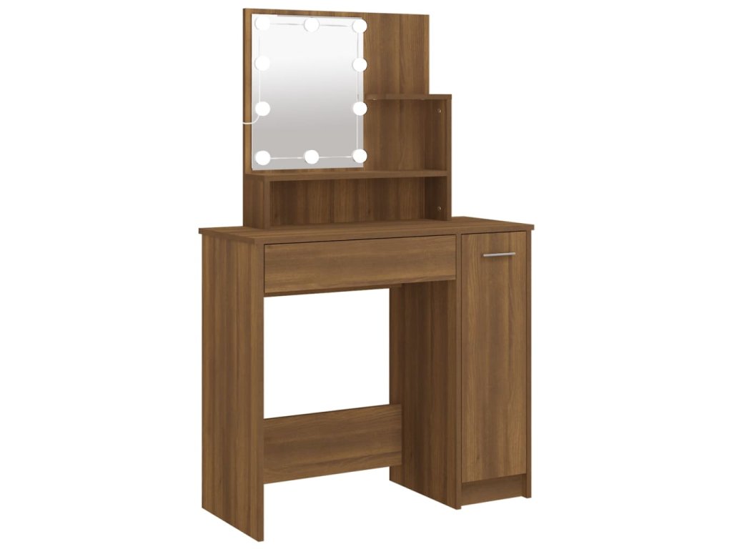 - LED svetlo: Kozmetický stolík má aj LED žiarovky s USB, na ktorých sa dajú jednoducho prepínať režimy z teplej farby svetla až po studenú bielu. Vhodné LED žiarovky okolo zrkadla osvetlia aj vašu krásu.