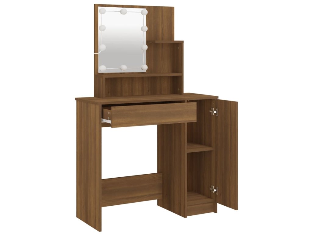 - Dostatok úložného priestoru: Tento kozmetický stolík má na stole otvorené police, zásuvku a bočnú skrinku, čo poskytuje dostatok úložného priestoru, aby ste mali dôležité veci dobre usporiadané a na dosah ruky.