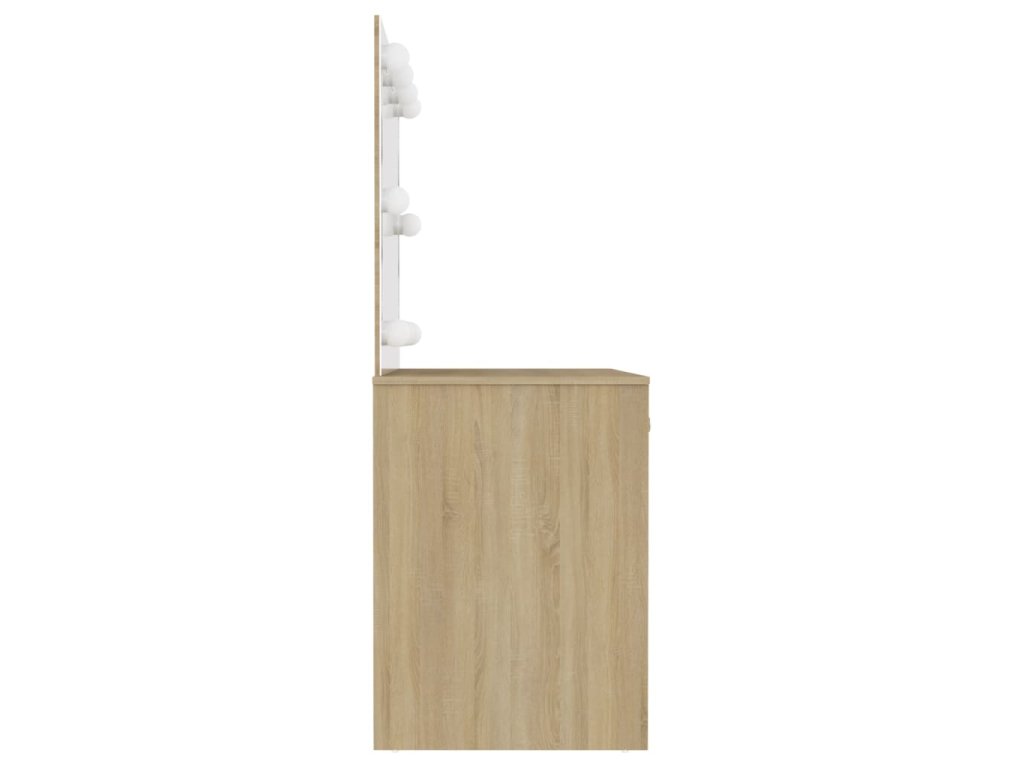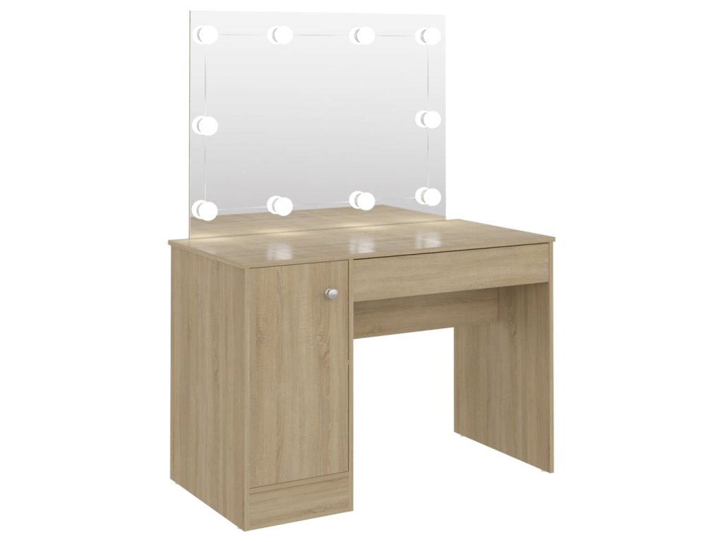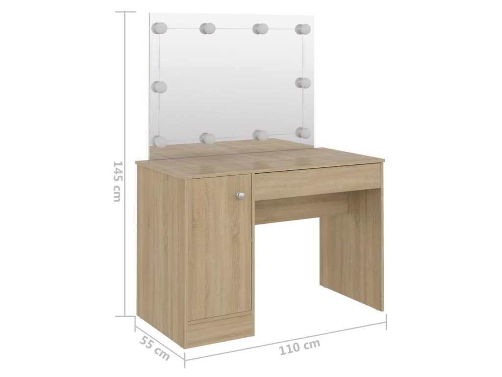 Tento toaletný stolík vyrobený z MDF zaujme elegantnou siluetou a jednoduchými líniami v modernom štýle. Poskytuje dostatok priestoru na kozmetiku, aby ste mali všetko uložené na svojom mieste. Krásne zrkadlo vám navyše uľahčí aplikáciu make-upu a zároveň stolíku dodáva elegantný vzhľad. Elegantné LED žiarovky vám poskytnú optimálne osvetlenie.