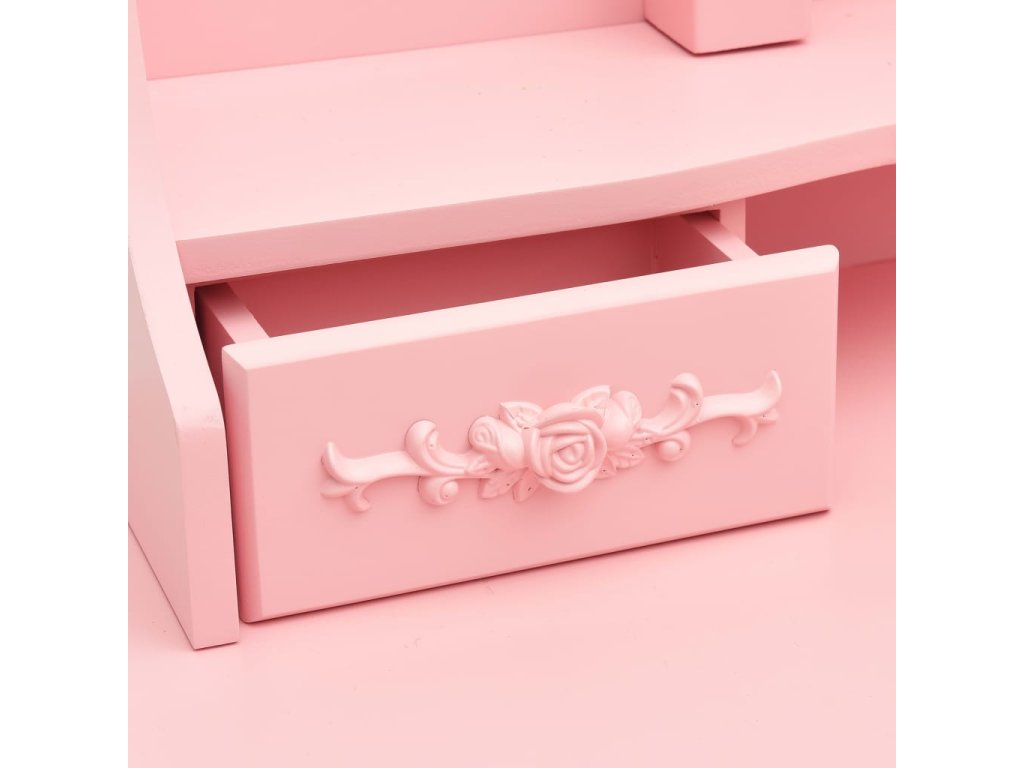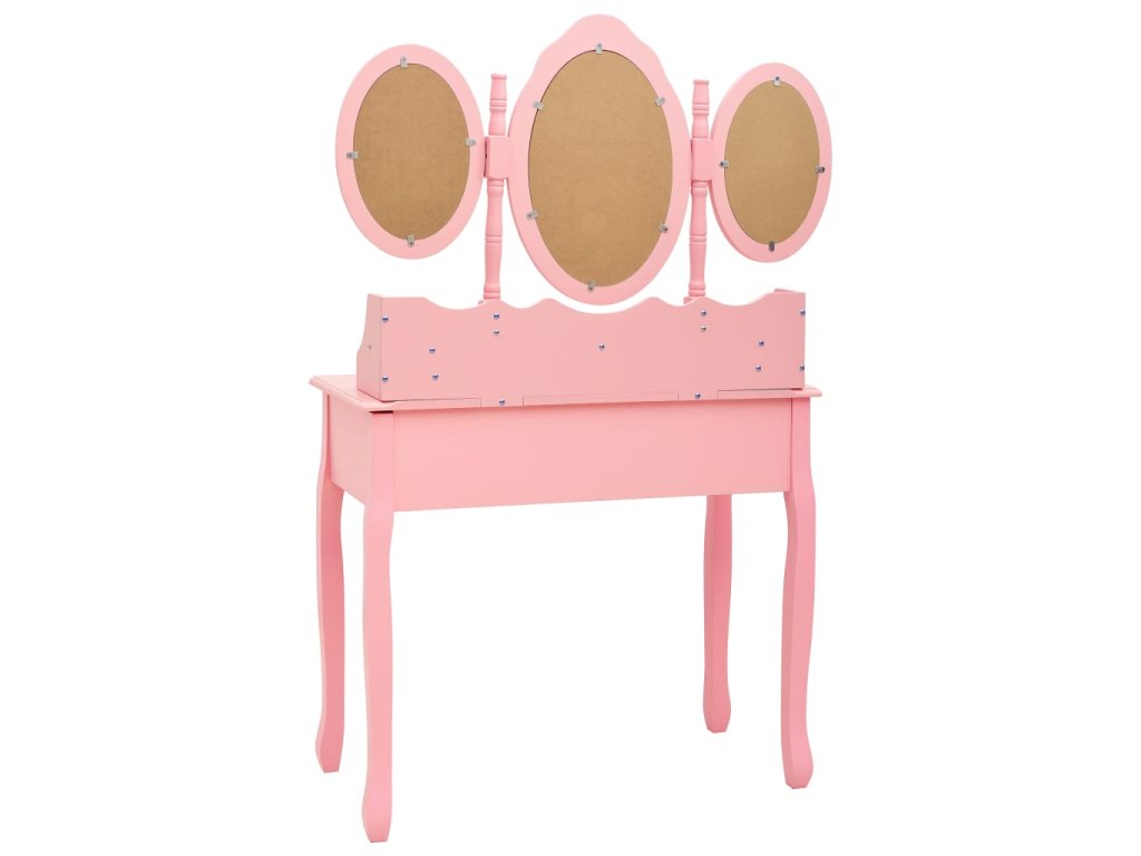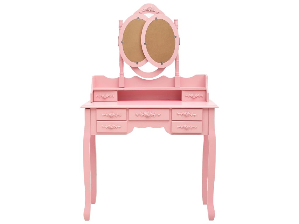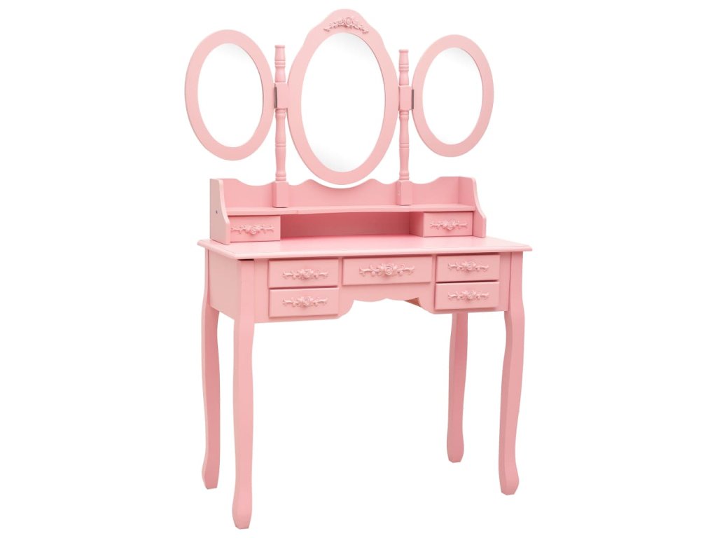 Zrkadlá majú samostatne stojaci rám a 2 bočné zrkadlá môžete otočiť do požadovaného uhla. Vďaka 7 zásuvkám máte ďalší priestor pre vaše šperky, kozmetiku a ďalšie veci. Vynikajúce spracovanie je ďalšou charakteristikou tejto súpravy stola a stoličky. Táto súprava pritiahne pozornosť všade tak, kde ju položíte.