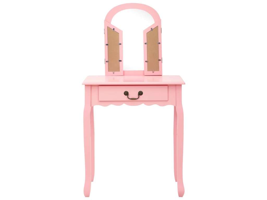 Tento toaletný stolík s oválnym zrkadlom a stoličkou bude tým najpútavejším prvkom každej spálne. Zásuvka ponúka dostatok priestoru na úhľadné uloženie kozmetických potrieb, ktoré používate každý deň. Stolička s hrubou výplňou vám umožní pohodlné sedenie pri líčení. Ak sa stolička nepoužíva, môžete ju zasunúť pod stolík, aby ste ušetrili miesto. Stolík je navyše odolný a ľahko sa udržiava.