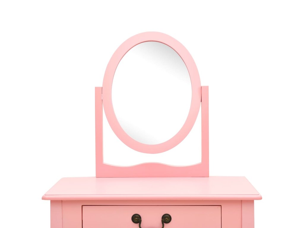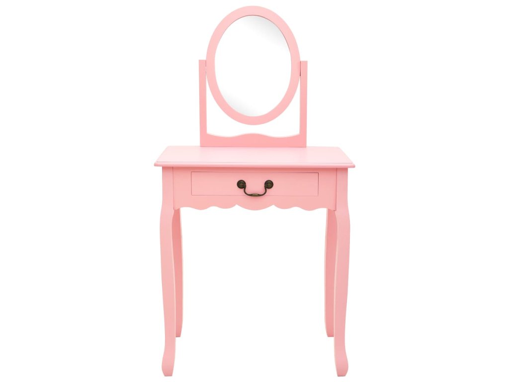 Tento toaletný stolík s okrúhlym zrkadlom a stoličkou bude tým najpútavejším prvkom každej spálne. Zásuvka ponúka dostatok priestoru na úhľadné uloženie kozmetických potrieb, ktoré používate každý deň. Stolička s hrubou výplňou vám umožní pohodlné sedenie pri líčení. Ak sa stolička nepoužíva, môžete ju zasunúť pod stolík, aby ste ušetrili miesto. Stolík je navyše odolný a ľahko sa udržiava.