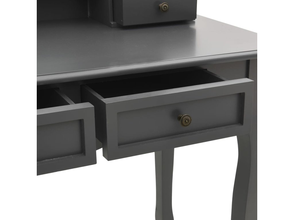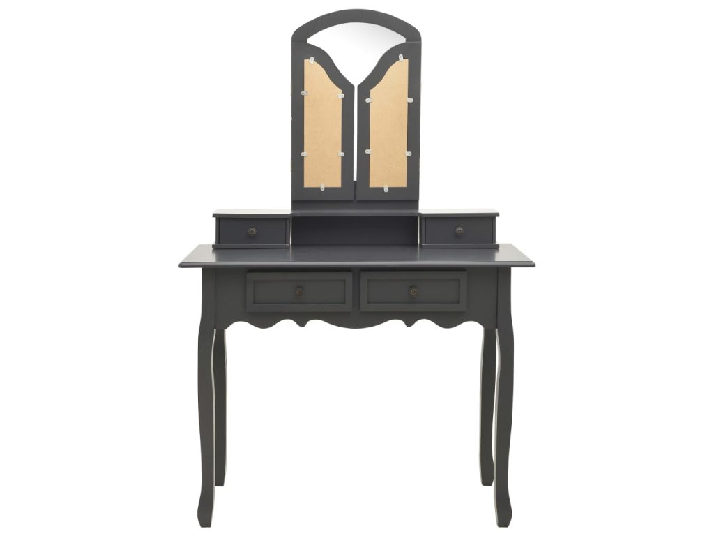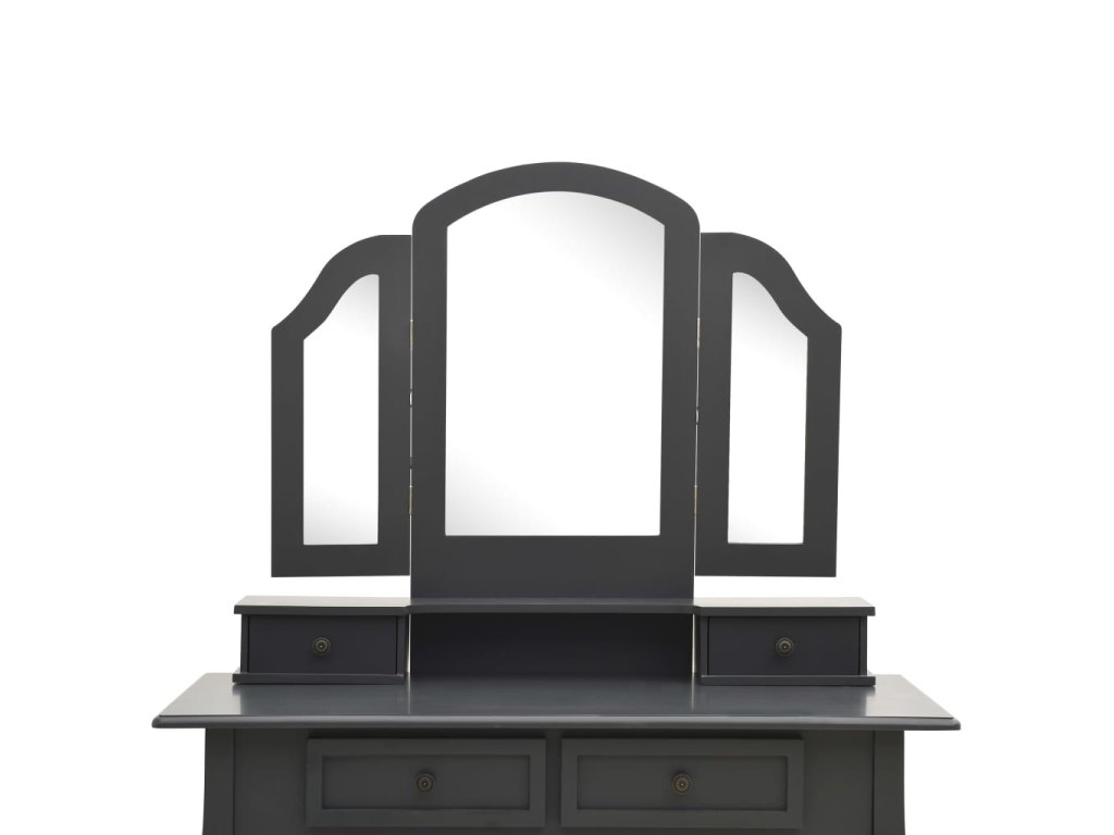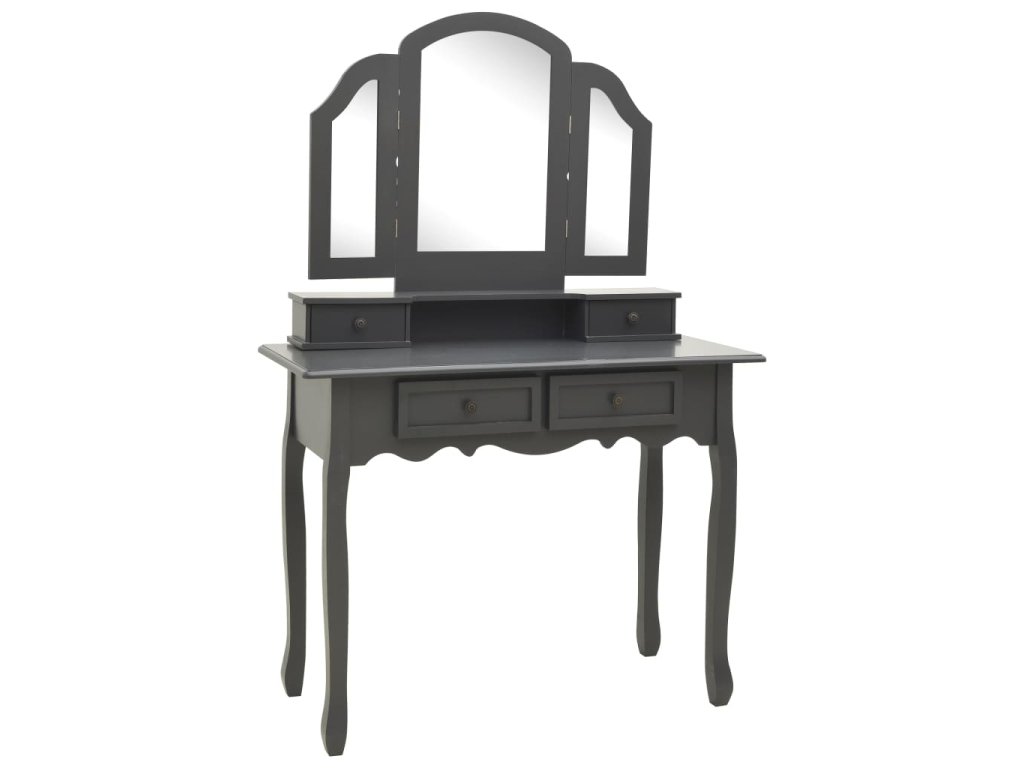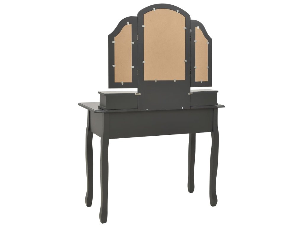 Táto okúzľujúca súprava toaletného stolíka a stoličky je vyrobená z dreva paulovnie prvotriednej kvality. Jej viktoriánsky vzhľad a sivý povrch vnesú do každého budoáru, salóniku alebo šatne nádych krásy a elegancie. Exkluzívne remeselné spracovanie dodáva toaletnému stolíku a stoličke jedinečné charakteristiky.