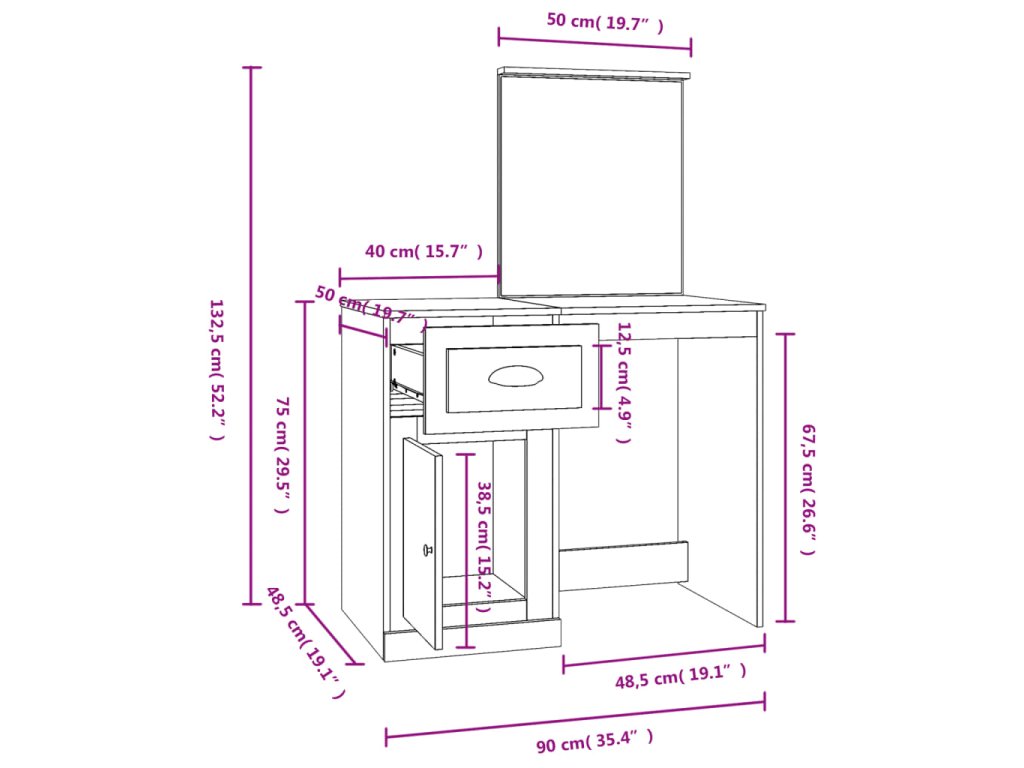 - Veľký úložný priestor: Toaletný stolík poskytuje dostatok priestoru pre ľahký prístup k vášmu make-upu, šperkom a každodenným potrebám.