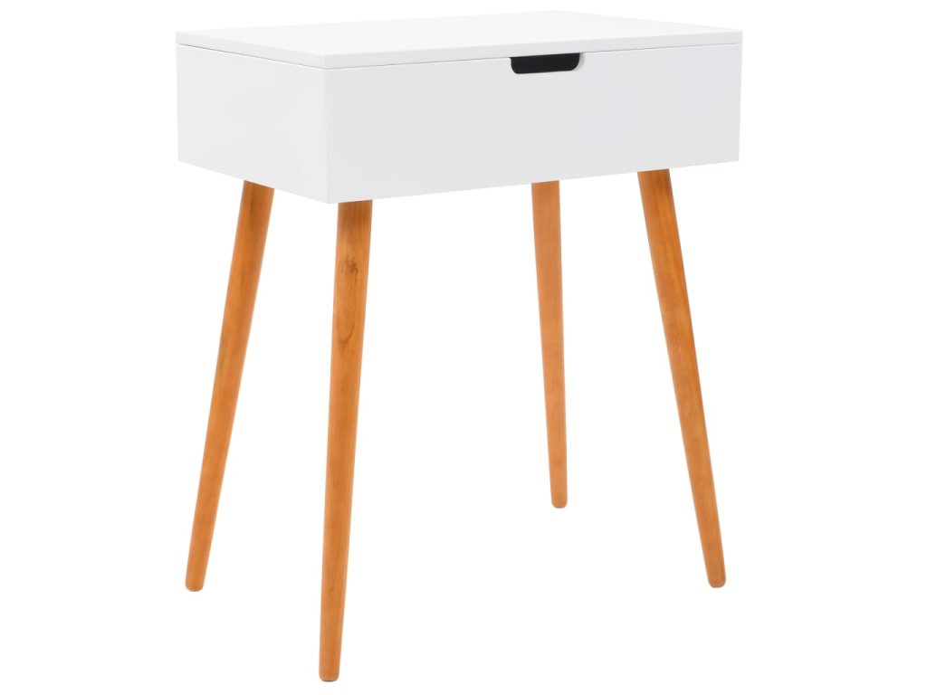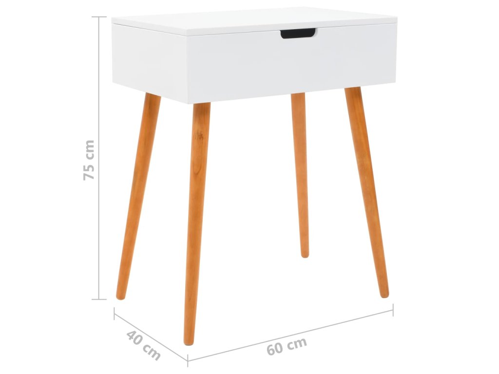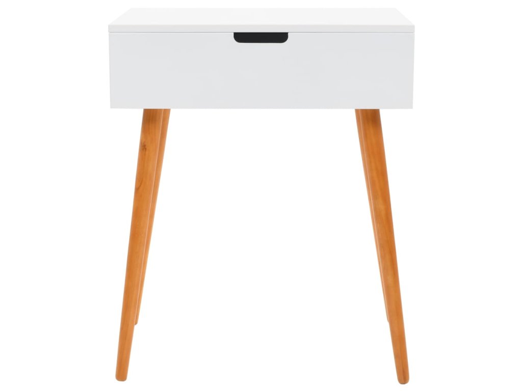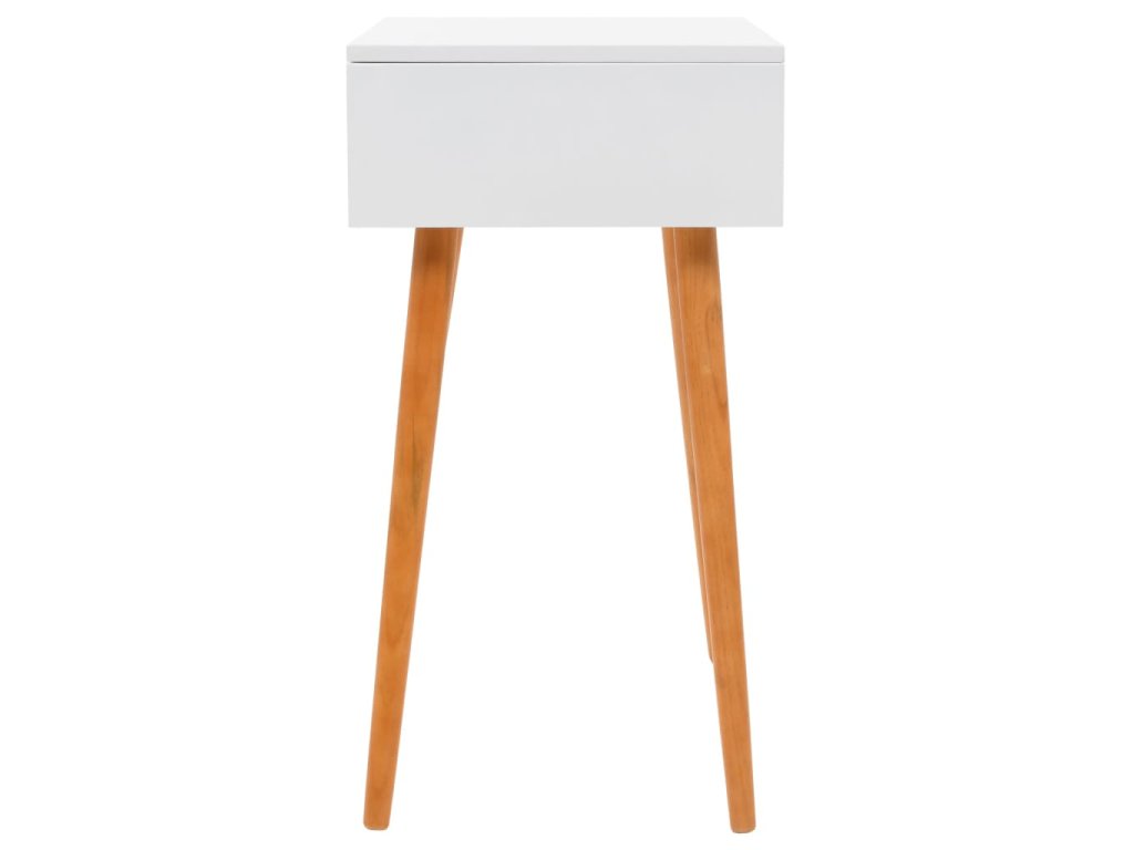 Stolík je vyrobený z MDF a má sklenené zrkadlo. Jeho súčasťou je vyklápací panel so zrkadlom, pod ktorým nájdete priestranný priečinok na odkladanie šperkov. Poskytuje dostatok miesta na kozmetiku a rôzne prípravky na starostlivosť o vlasy a pleť. Keď zrkadlo nepoužívate, stačí ho sklopiť a z vrchnej dosky stola sa stane ideálne miesto na uloženie líčidiel, šperkov a iných kozmetických potrieb. Pevné drevené nohy dodávajú stolíku stabilitu a umocňujú jeho moderný dizajn z polovice minulého storočia.