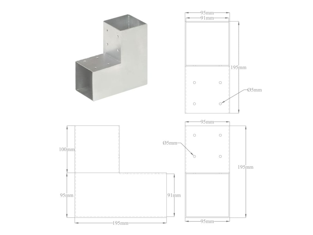 Elektricky galvanizovaná spojka umožňuje ľahké pripojenie a stabilizáciu hranolov. Všetky spojky sú predvŕtané. Táto objímka pre drevené trámy je určená pre 2 štvorcové drevené hranoly s rozmerom 91 mm.