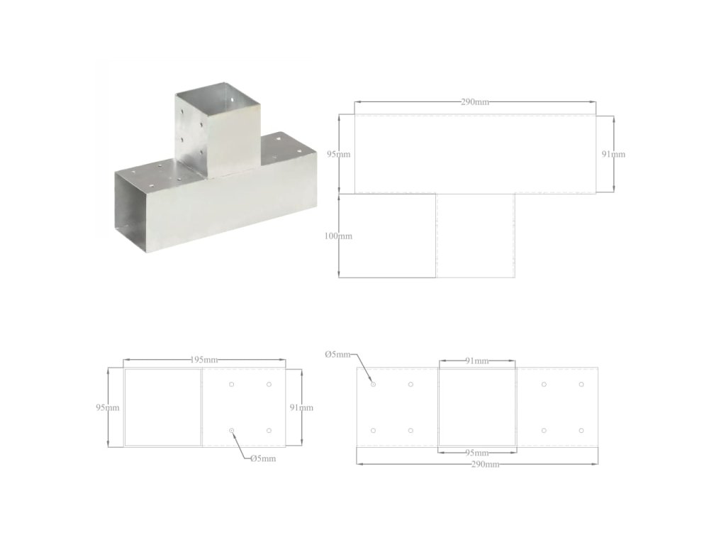 Elektricky galvanizovaná spojka umožňuje ľahké pripojenie a stabilizáciu hranolov. Všetky spojky sú predvŕtané. Táto objímka pre drevené trámy je určená pre 3 štvorcové drevené hranoly s rozmerom 91 mm.