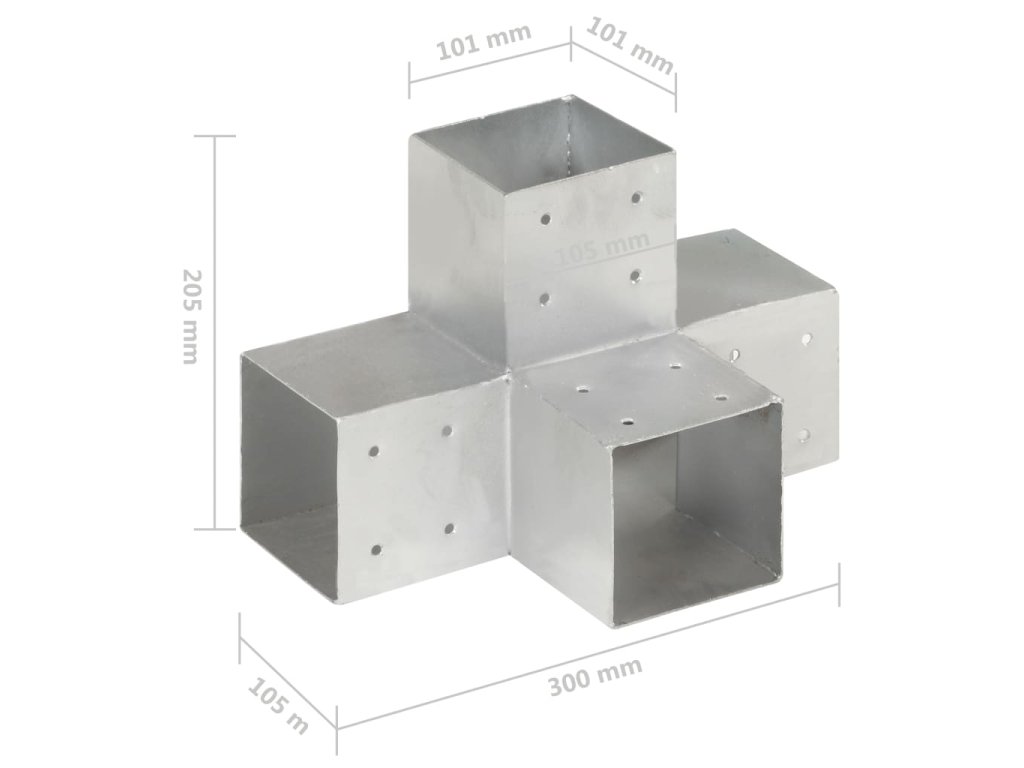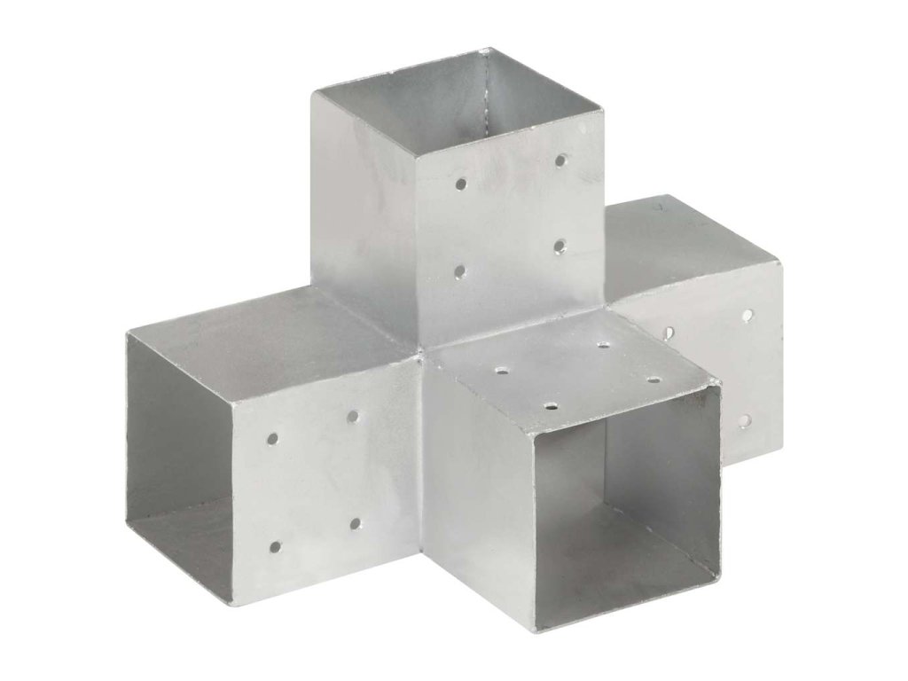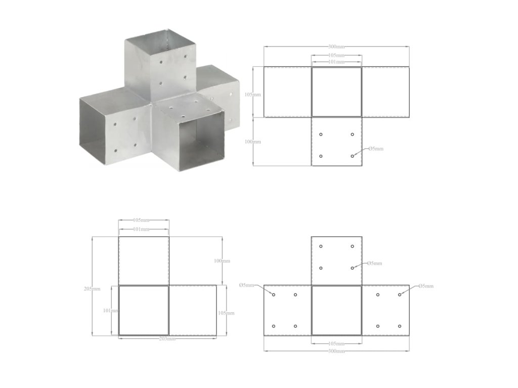 Elektricky galvanizovaná spojka umožňuje ľahké pripojenie a stabilizáciu hranolov. Všetky spojky sú predvŕtané. Táto objímka pre drevené trámy je určená pre 4 drevené štvorcové hranoly s rozmerom 101 mm.