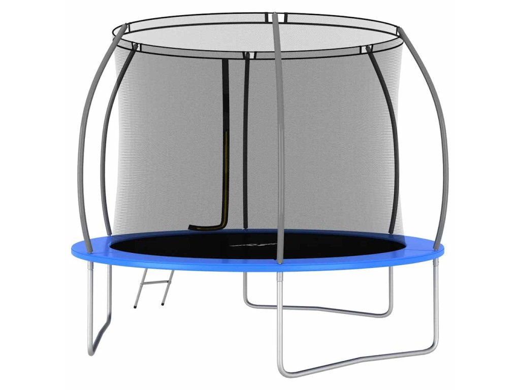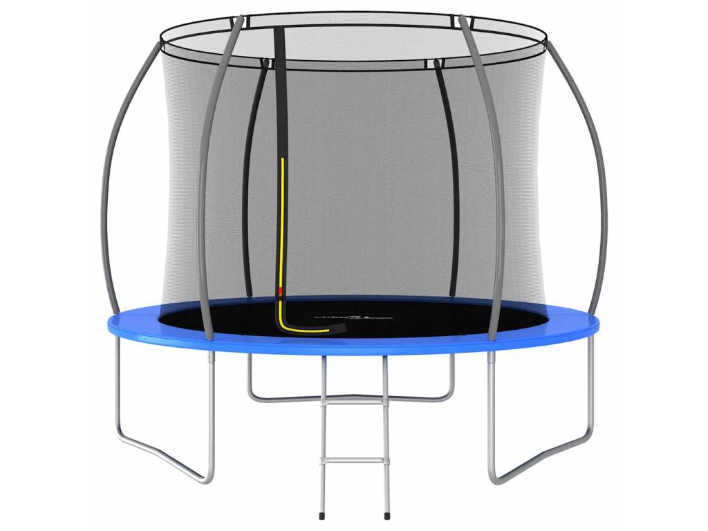 Užite si veľa zábavy a skákania s našou okrúhlou trampolínou! Naša trampolínová sada obsahuje bezpečnostnú sieť, vstupný rebrík a pokrývku proti dažďu.