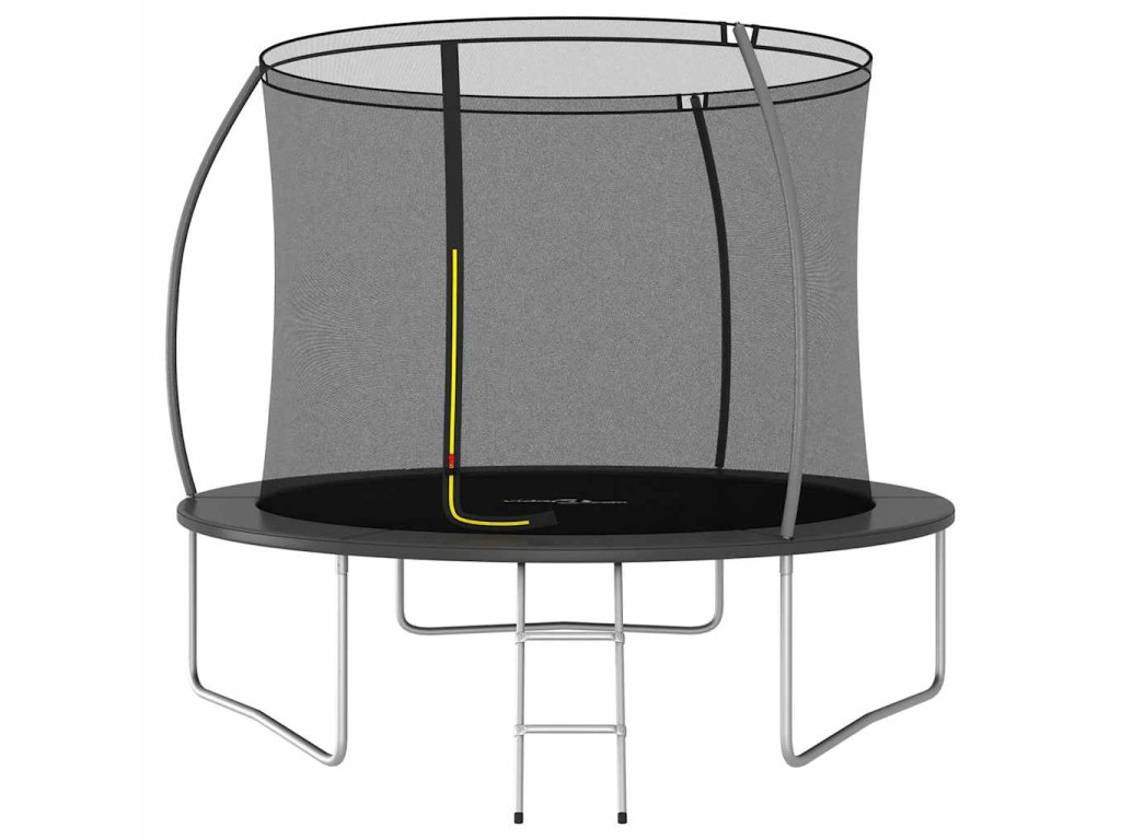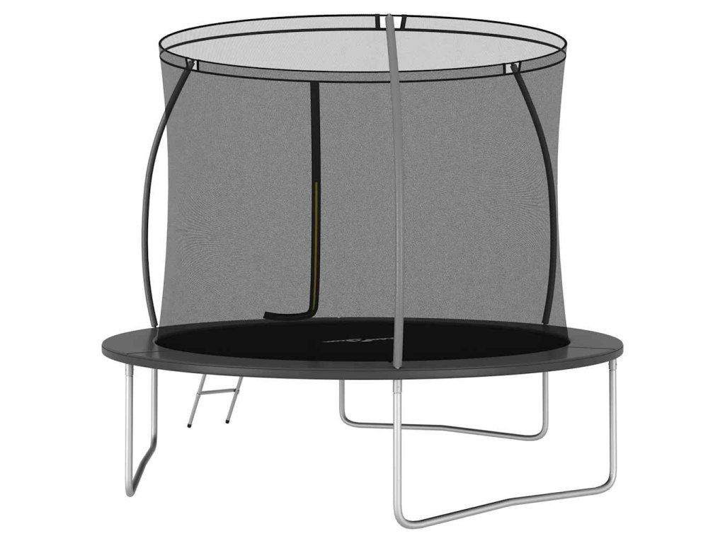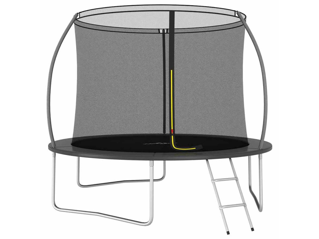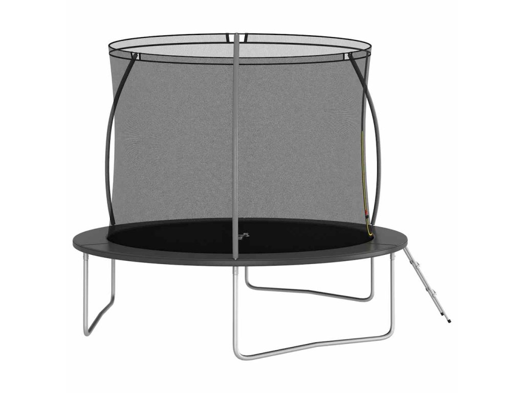 Užite si veľa zábavy a skákania s touto okrúhlou trampolínou! Naša trampolínová sada obsahuje bezpečnostnú sieť, vstupný rebrík a pokrývku proti dažďu.