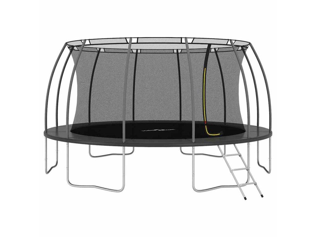 Užite si veľa zábavy a skákania s touto okrúhlou trampolínou! Naša trampolínová sada obsahuje bezpečnostnú sieť, vstupný rebrík a pokrývku proti dažďu.
