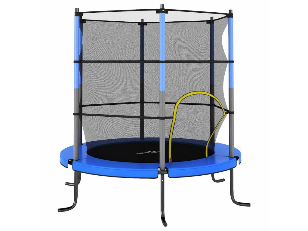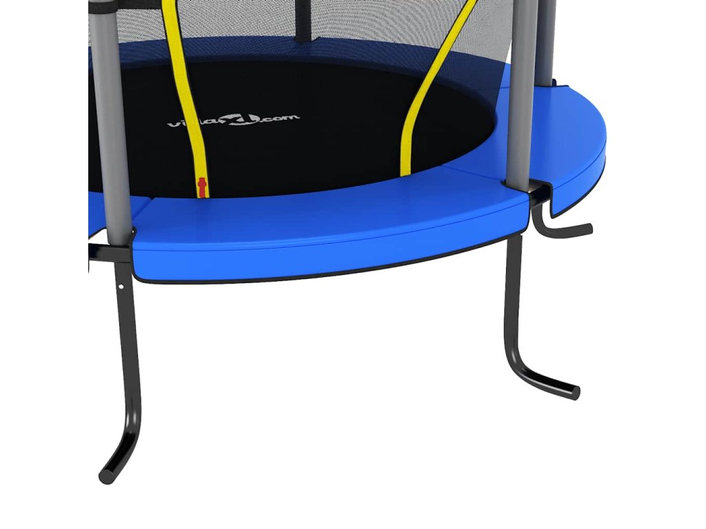 Odrazová trampolína pozostáva z oceľového rámu s práškovou povrchovou úpravou so 6 nohami, ktoré poskytujú väčšiu stabilitu a bezpečnosť. Trampolína je navyše vybavená PVC výplňou s 10 mm EPE penou, ktorá zaručuje bezpečnosť detí, keď omylom dopadnú na okraj trampolíny. Cez vstupné sieťovinové dvere môžu deti vchádzať dovnútra a vychádzať von. Zapínajú sa na zips a postarajú sa o to, aby deti nepadali z trampolíny.