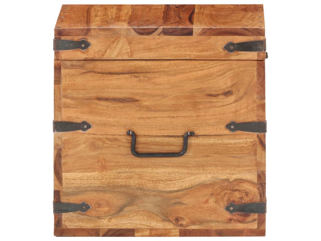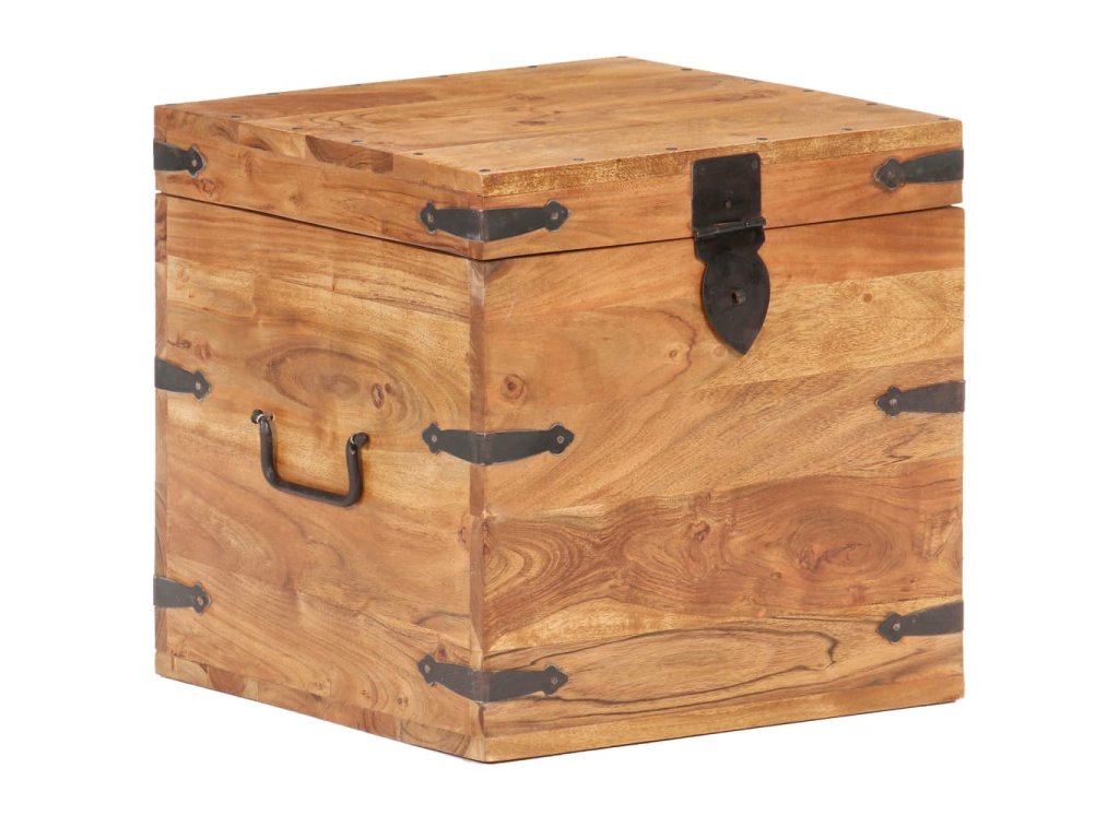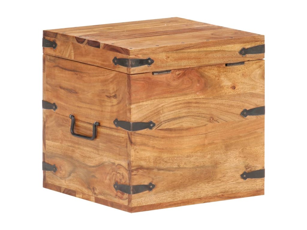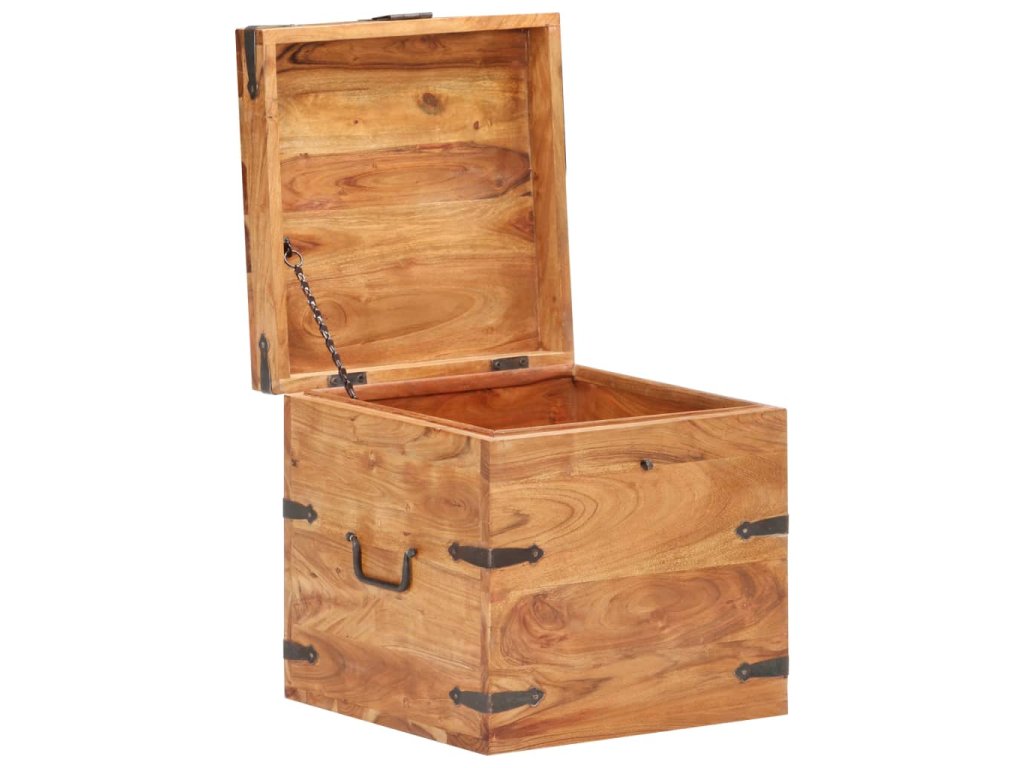 Truhlica je vyrobená z akáciového masívu, vďaka čomu je stabilná a trvácna. Na prednej strane sa nachádza západka a po stranách nájdete dve rúčky, za ktoré môžete truhlicu zdvhnúť. Vďaka stabilnej a plochej vrchnej časti poslúži aj ako nočný stolík. Vďaka remeselnému opracovaniu a krásnej textúre dreva je každý kus nábytku jedinečný a trochu odlišný od ostatných.