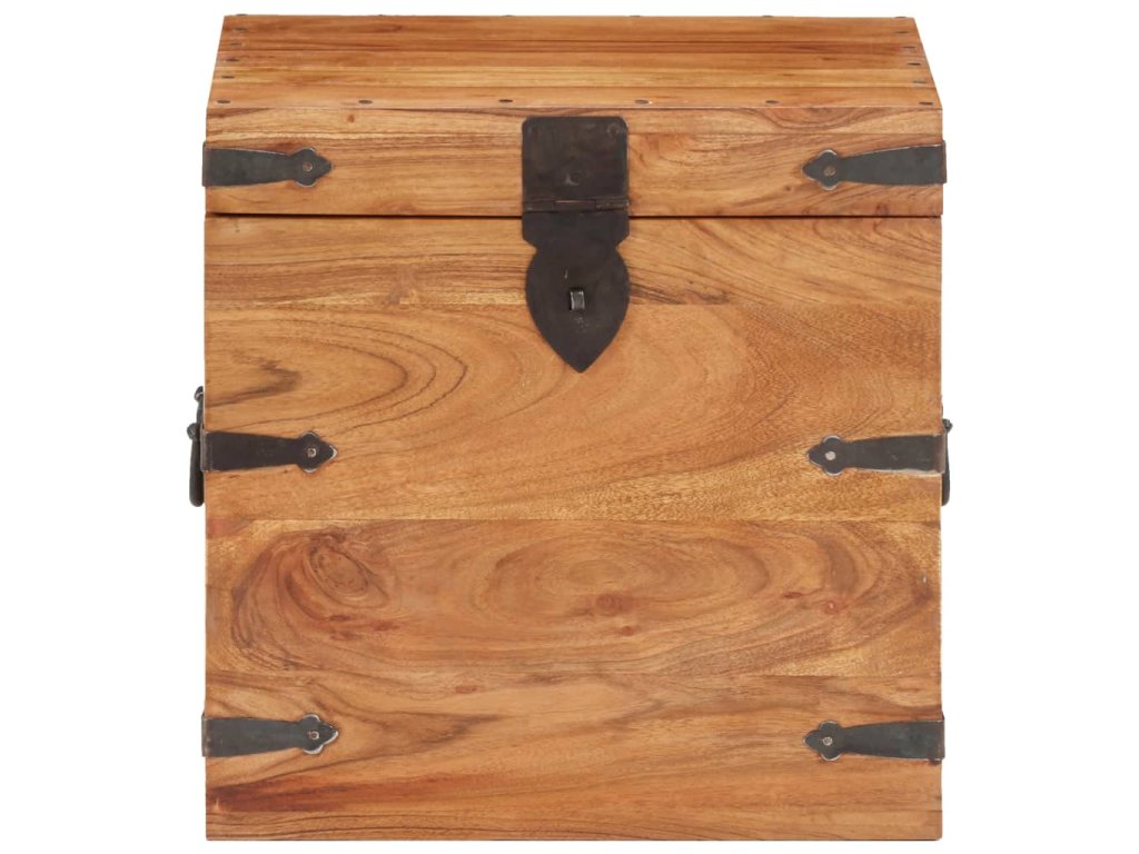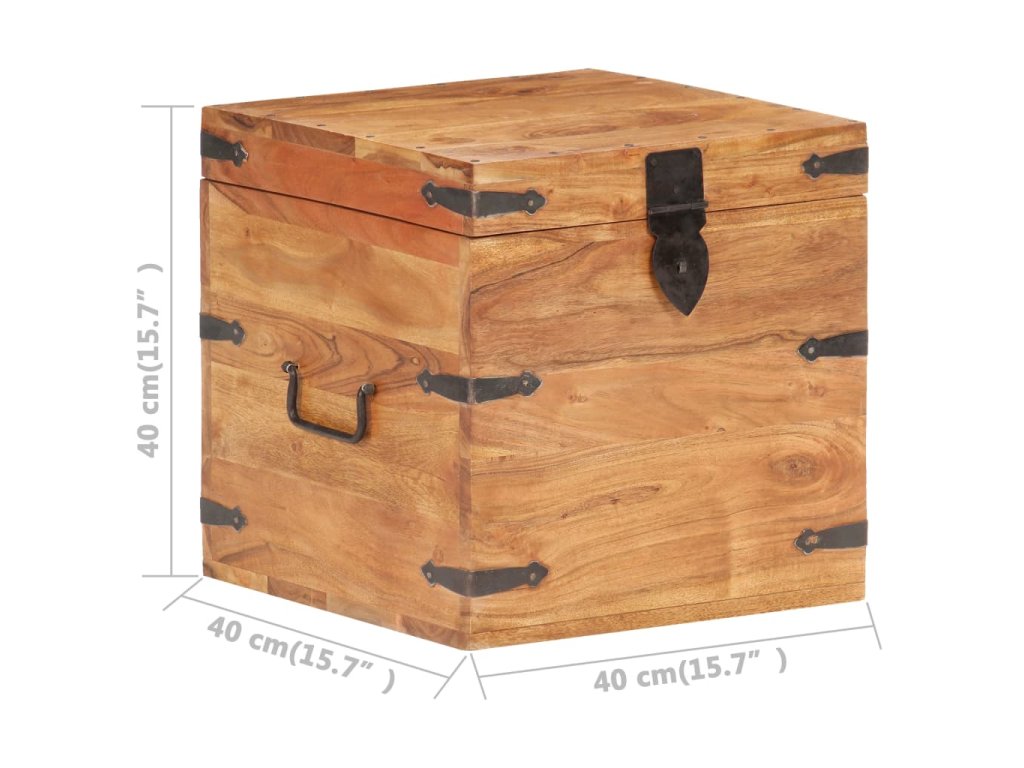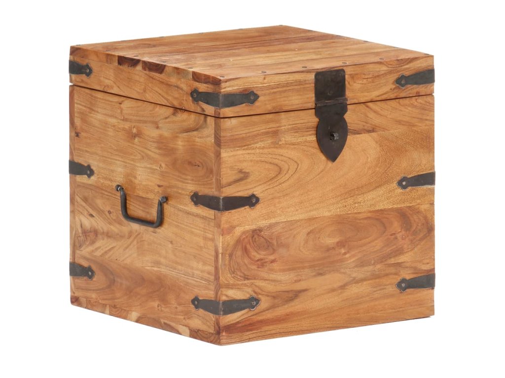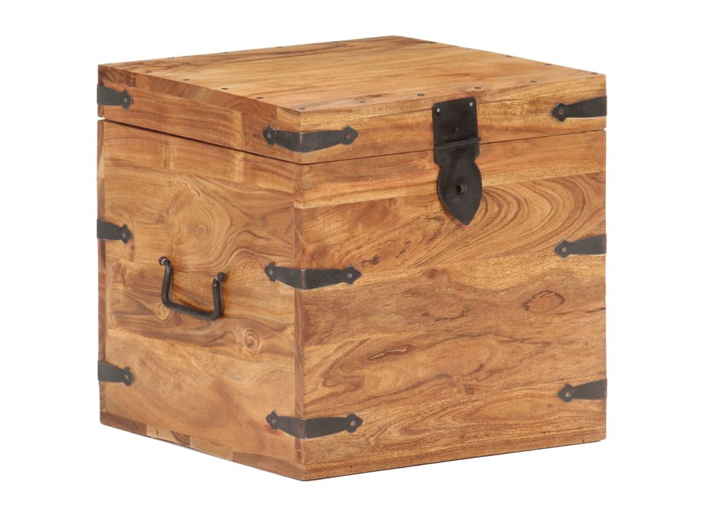 Truhlica je vyrobená z akáciového masívu, vďaka čomu je stabilná a trvácna. Na prednej strane sa nachádza západka a po stranách nájdete dve rúčky, za ktoré môžete truhlicu zdvhnúť. Vďaka stabilnej a plochej vrchnej časti poslúži aj ako nočný stolík. Vďaka remeselnému opracovaniu a krásnej textúre dreva je každý kus nábytku jedinečný a trochu odlišný od ostatných.