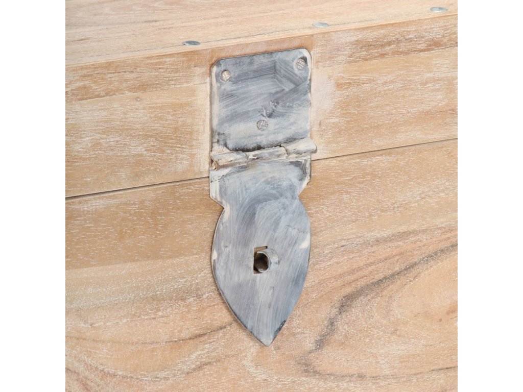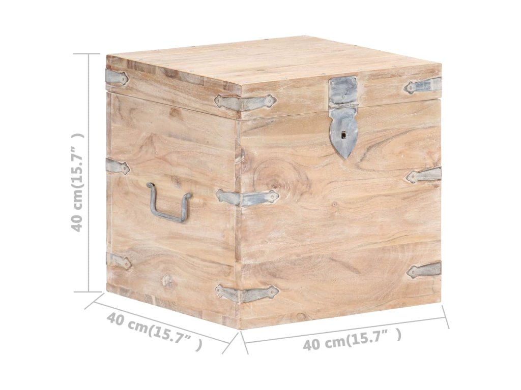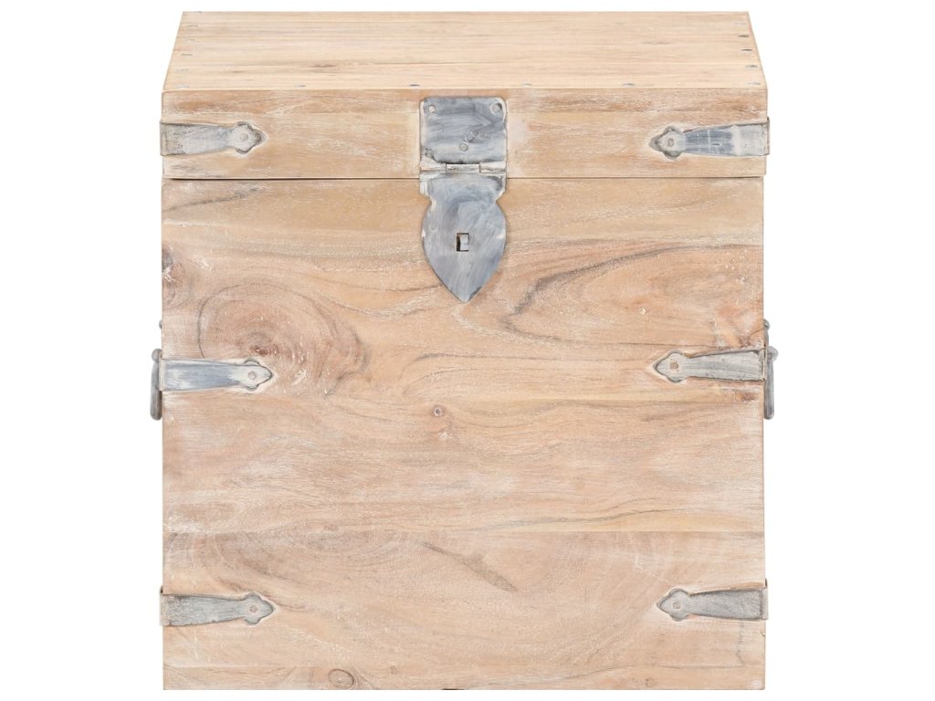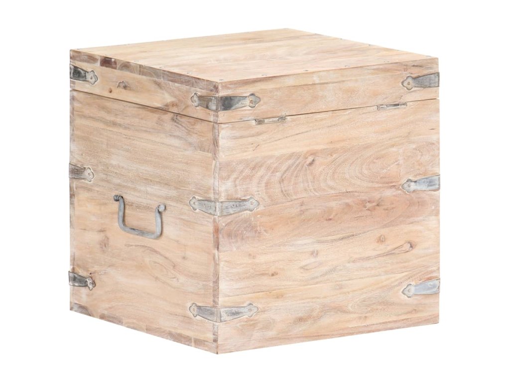 Truhlica je vyrobená z akáciového masívu, vďaka čomu je stabilná a trvácna. Na prednej strane sa nachádza západka a po stranách nájdete dve rúčky, za ktoré môžete truhlicu zdvhnúť. Vďaka stabilnej a plochej vrchnej časti poslúži aj ako nočný stolík. Vďaka remeselnému opracovaniu a krásnej textúre dreva je každý kus nábytku jedinečný a trochu odlišný od ostatných.