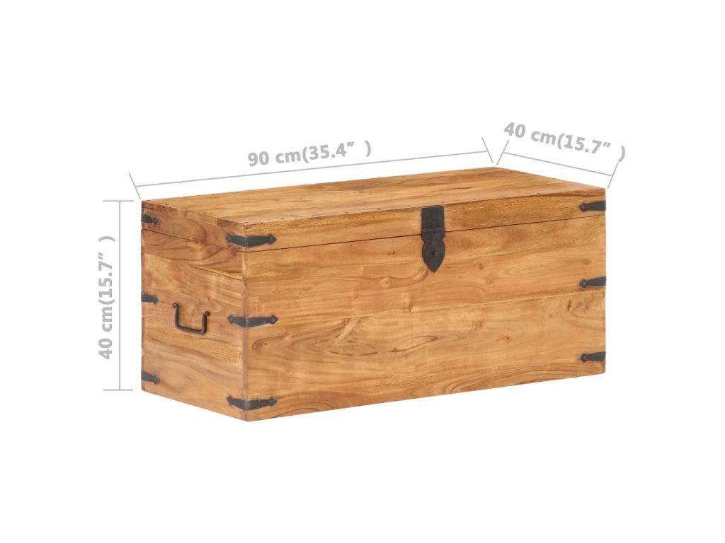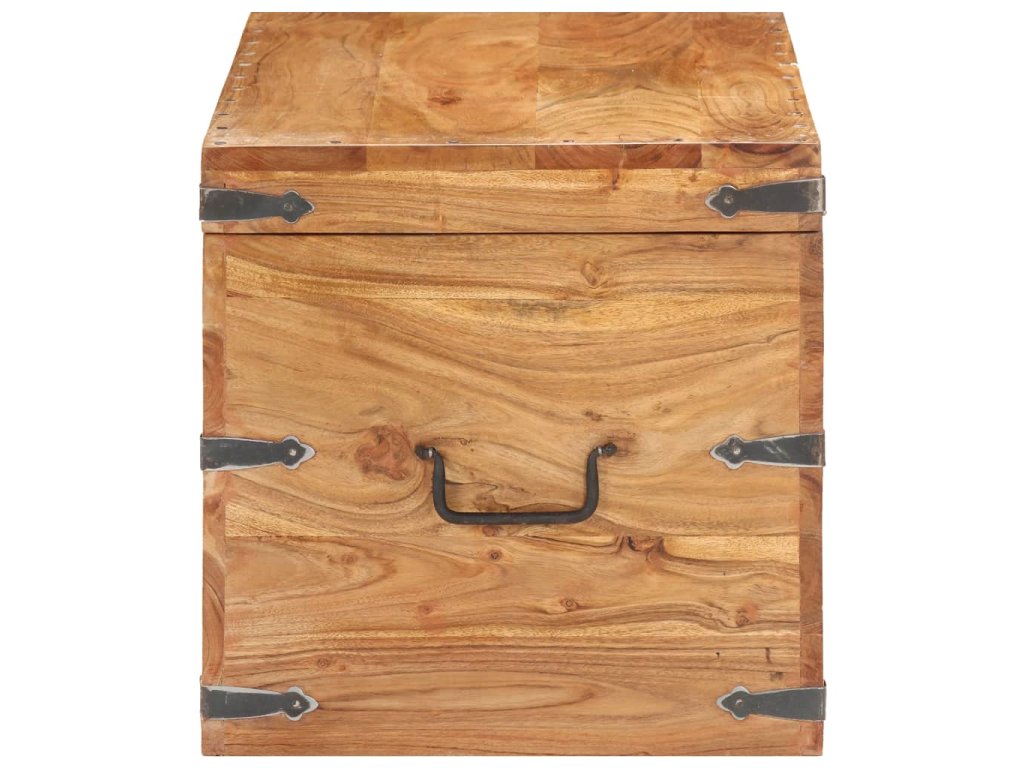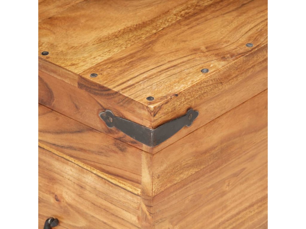 Truhlica je vyrobená z akáciového masívu, vďaka čomu je stabilná a trvácna. Na prednej strane sa nachádza západka a po stranách nájdete dve rúčky, za ktoré môžete truhlicu zdvhnúť. Vďaka stabilnej a plochej vrchnej časti poslúži aj ako lavička do chodby. Vďaka remeselnému opracovaniu a krásnej textúre dreva je každý kus nábytku jedinečný a trochu odlišný od ostatných.