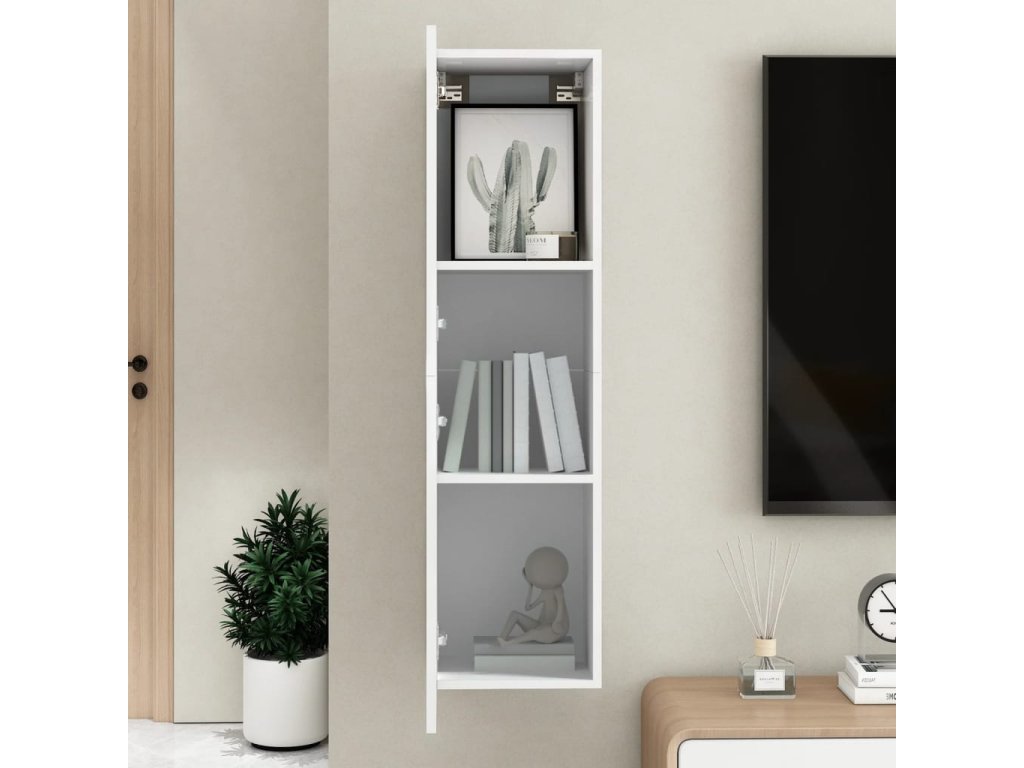 Nástenná TV skrinka je vyrobená z kompozitného dreva, vďaka čomu je robustná a stabilná. Skrinka má 2 police, a tak predstavuje ideálne miesto na odkladanie kníh, časopisov, DVD a iných predmetov. Nástenná skrinka sa navyše dá ľahko očistiť vlhkou handričkou.