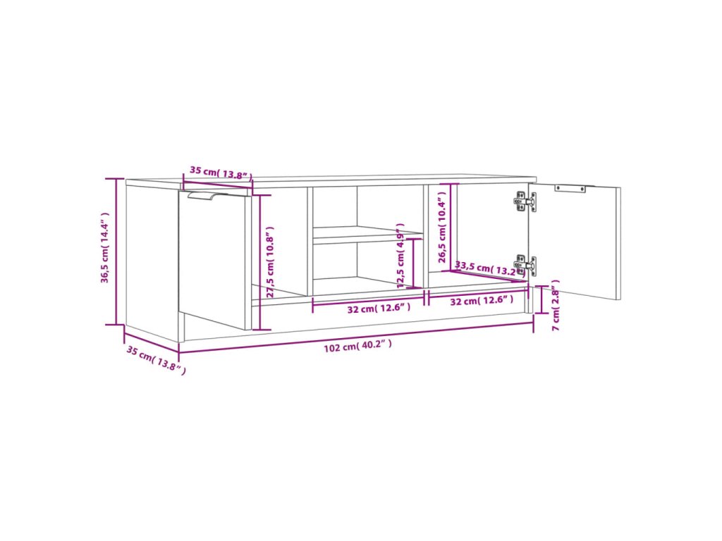 - Rozmery: 102 x 35 x 36,5 cm (Š x H x V)