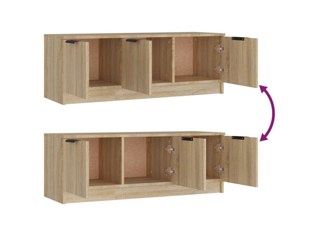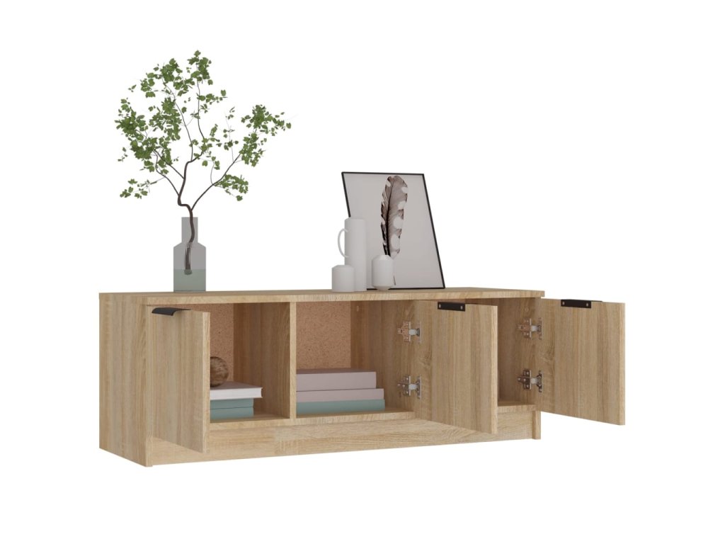 - Dostatok úložného priestoru: Stereo skrinka obsahuje priehradky na prehľadné usporiadanie DVD prehrávačov, herných konzol, streamovacích zariadení a nosičov médií. Táto TV jednotka je vybavená dvierkami na ochranu predmetov pred prachom.