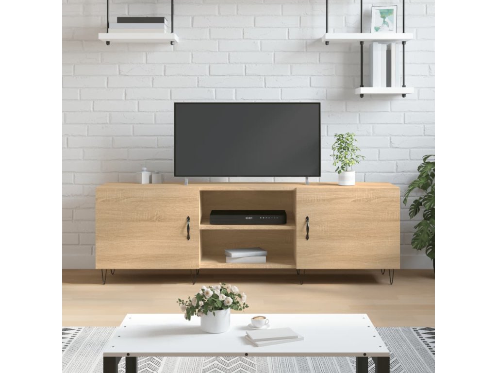 - Pevný materiál: Spracované drevo je mimoriadne kvalitné s hladkým povrchom a vyznačuje sa pevnosťou, stabilitou a odolnosťou proti vlhkosti. TV stolík je vyrobený zo spracovanéno dreva a ľahko sa čistí.
