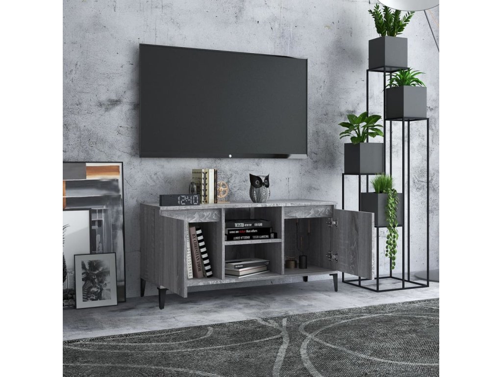 Táto TV skrinka so štyrmi kovovými nohami je stabilná a robustná. Je navrhnutá s 2 poličkami a 2 priehradkami, a ponúka dostatok úložného priestoru na to, aby boli vaše časopisy, knihy, DVD a multimediálne zariadenia dobre organizované a na dosah ruky. Navyše sa dá ľahko čistiť vlhkou handričkou.