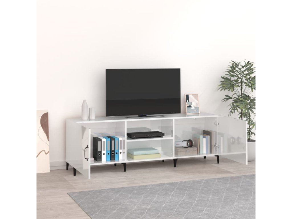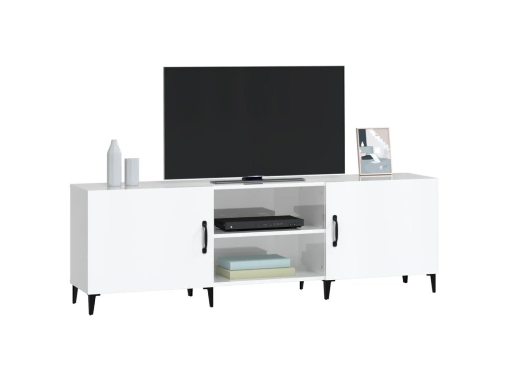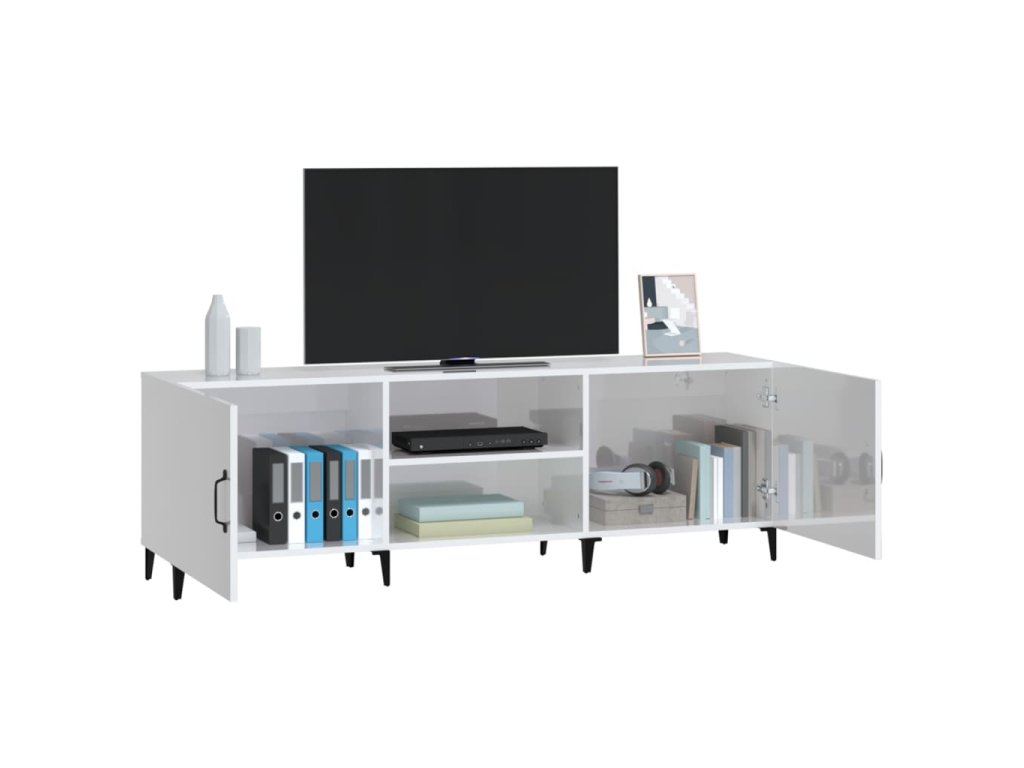 - Dostatok úložného priestoru: Stereo skrinka obsahuje priehradky na prehľadné usporiadanie DVD prehrávačov, herných konzol, streamovacích zariadení a nosičov médií.