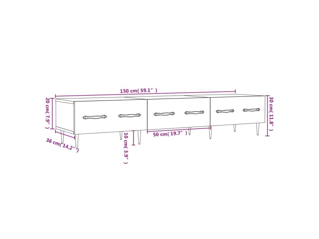 - Veľký úložný priestor: TV skrinka má 3 zásuvky, a tak je ako stvorená na odkladanie časopisov, DVD a iných predmetov.