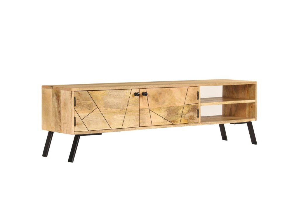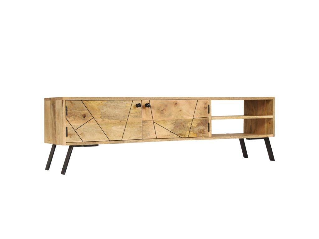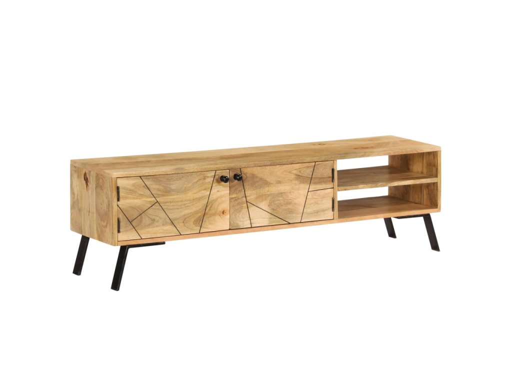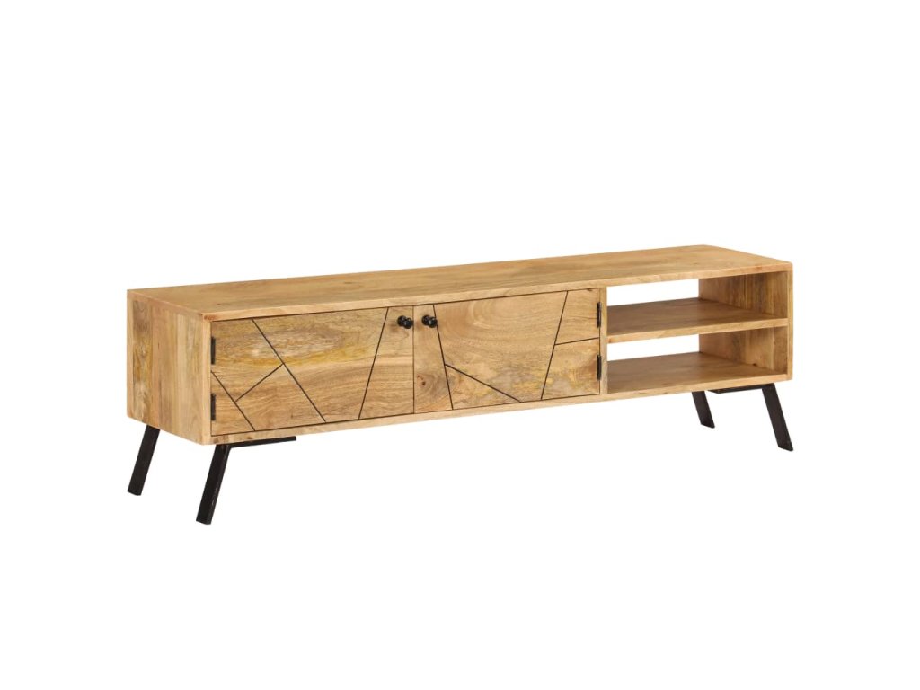 Tento podstavec pod TV je vyrobený z masívneho mangovníkového dreva a je veľmi stabilný a odolný. Robustná vrchná doska je ideálna pre umiestnenie televízora a stereo systémov, alebo dekoratívnych predmetov, ako sú vázy alebo rastliny v kvetináčoch. Tento podstavec pod TV poskytuje dostatok priestoru na úhľadné uloženie DVD prehrávačov, herných konzol, streamovacích zariadení, nosičov médií, atď. Dekoračné motívy dodávajú skrinke rustikálny šarm. Produkt sa jednoducho montuje.