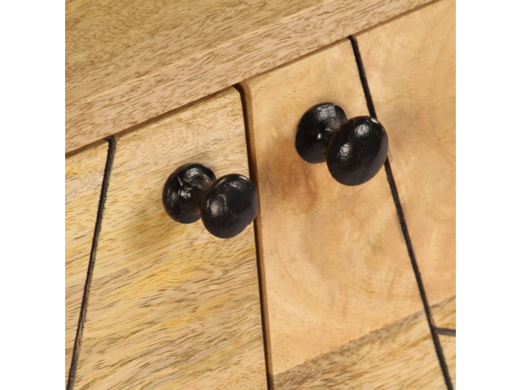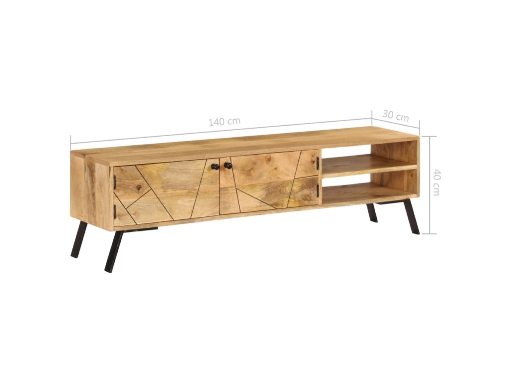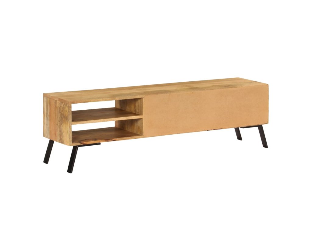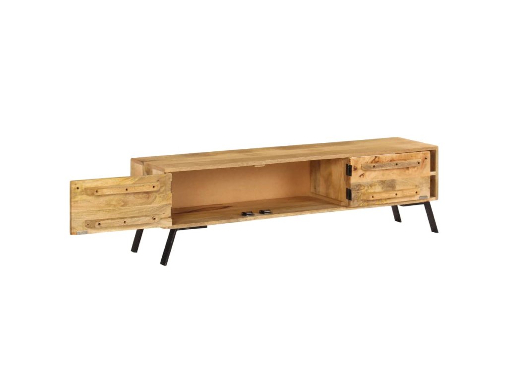 Tento podstavec pod TV je vyrobený z masívneho mangovníkového dreva a je veľmi stabilný a odolný. Robustná vrchná doska je ideálna pre umiestnenie televízora a stereo systémov, alebo dekoratívnych predmetov, ako sú vázy alebo rastliny v kvetináčoch. Tento podstavec pod TV poskytuje dostatok priestoru na úhľadné uloženie DVD prehrávačov, herných konzol, streamovacích zariadení, nosičov médií, atď. Dekoračné motívy dodávajú skrinke rustikálny šarm. Produkt sa jednoducho montuje.