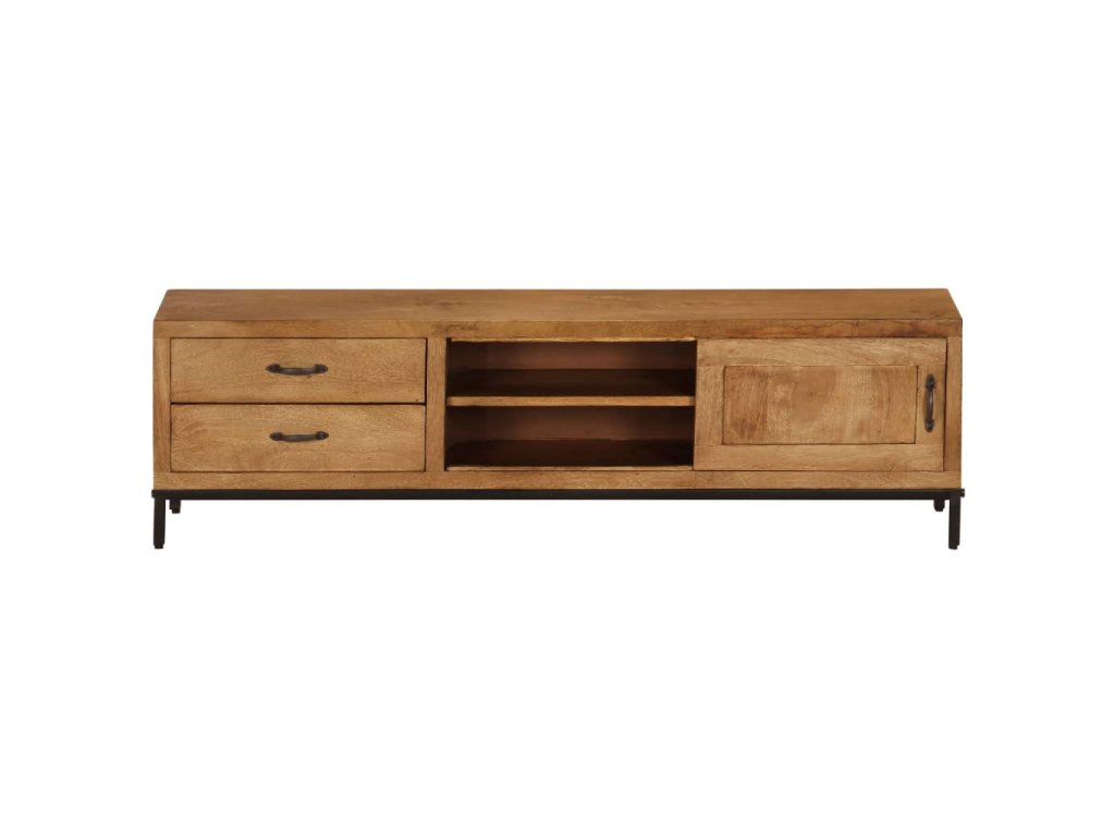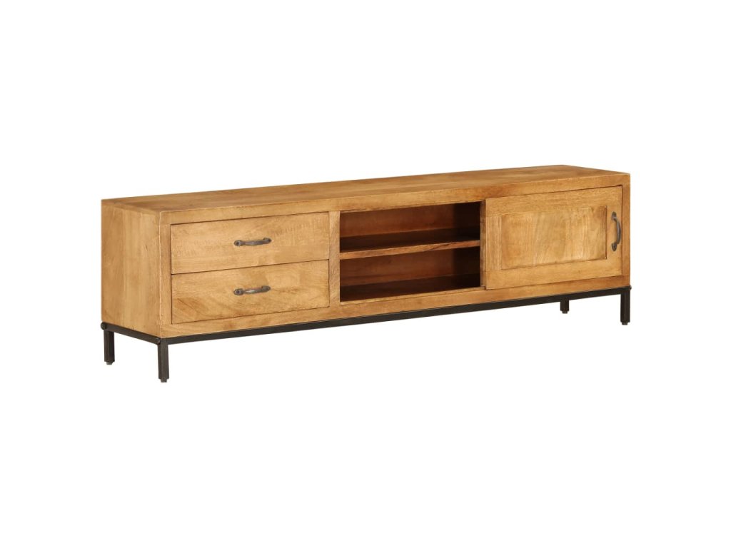 Tento TV stolík je ručne vyrobený z masívneho mangového dreva, ktoré je pevné, stabilné, odolné a nádherné. Remeselné prevedenie mu dodáva úžasný retro štýl. Každý krok procesu je robený s tou najväčšou starostlivosťou, či už sa jedná o rezanie, lakovanie alebo natieranie. Remeselné prevedenie a nádherná štruktúra dreva robí každý kus tohto nábytku jedinečným a trochu iným, ako je ten ďalší. Oceľové nohy zaručujú stabilitu stolíka.