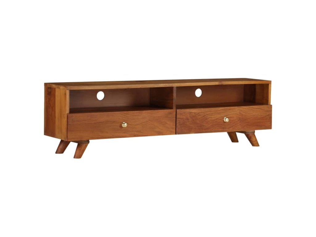 Táto retro drevená TV skrinka má nenápadný, praktický dizajn a bude sa hodiť do každej domácnosti. Stolík na TV je veľmi stabilný a trvácny. Má 2 priečinky a 2 otvorené poličky, kam si môžete položiť multimediálne zariadenia, herné konzoly alebo časopisy. TV stolík môžete využívať aj ako príručnú skrinku či skrinku na Hi-Fi vežu.