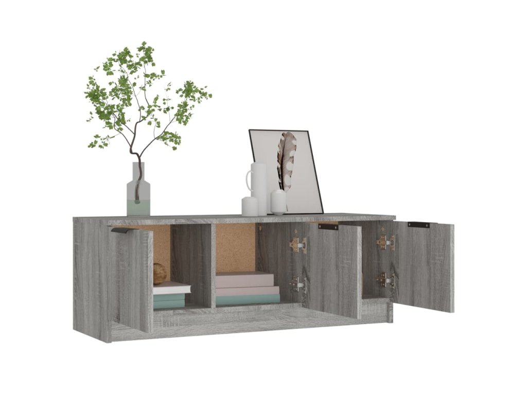 - Dostatok úložného priestoru: Stereo skrinka obsahuje priehradky na prehľadné usporiadanie DVD prehrávačov, herných konzol, streamovacích zariadení a nosičov médií. Táto TV jednotka je vybavená dvierkami na ochranu predmetov pred prachom.