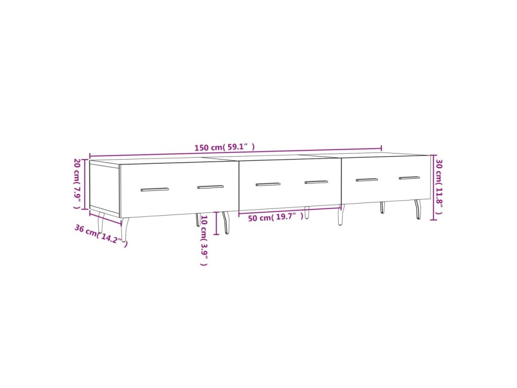 - Veľký úložný priestor: TV skrinka má 3 zásuvky, a tak je ako stvorená na odkladanie časopisov, DVD a iných predmetov.