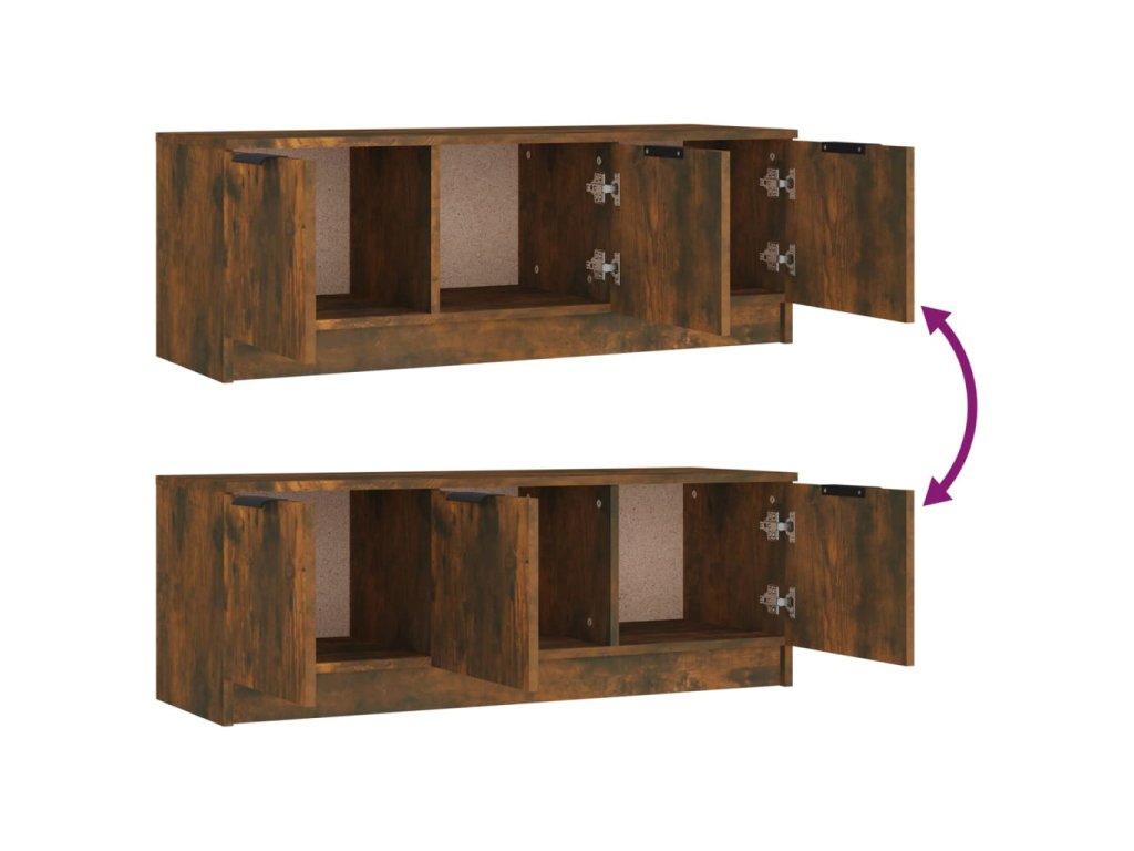 - Dostatok úložného priestoru: Stereo skrinka obsahuje priehradky na prehľadné usporiadanie DVD prehrávačov, herných konzol, streamovacích zariadení a nosičov médií. Táto TV jednotka je vybavená dvierkami na ochranu predmetov pred prachom.