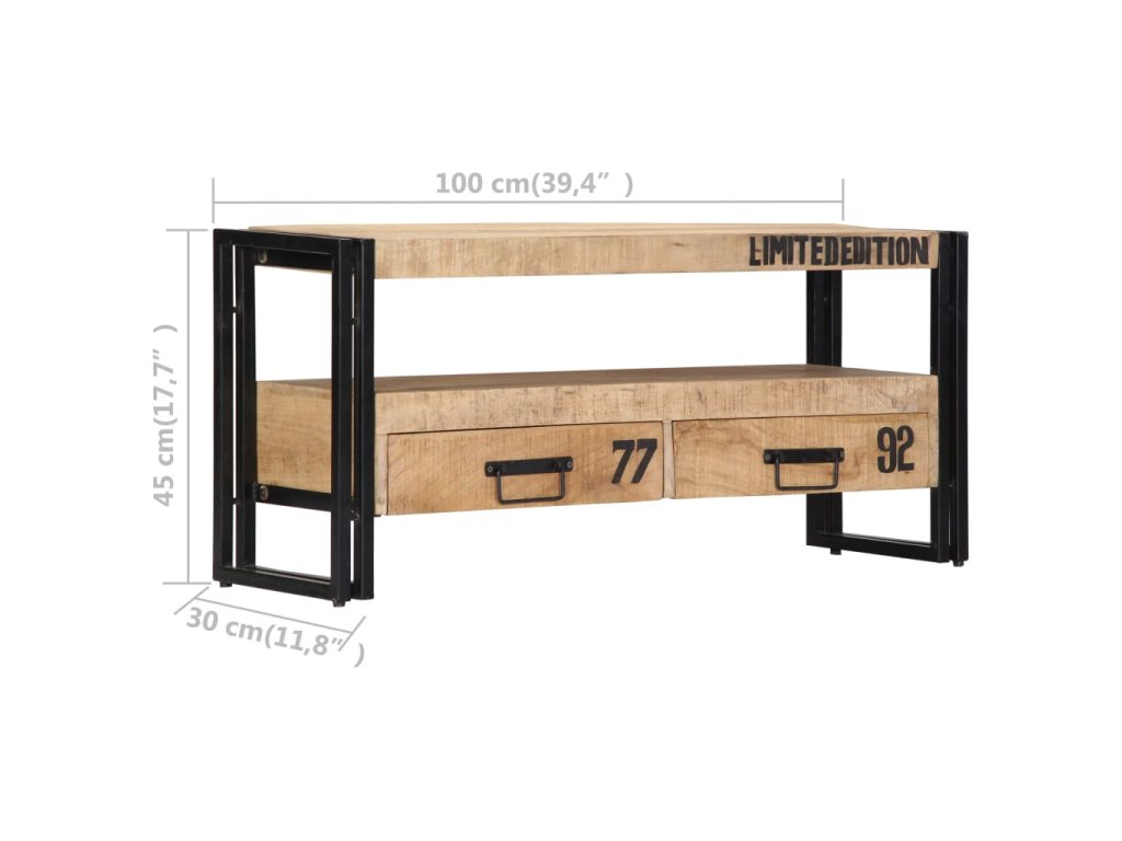 Táto HiFi skrinka je vyrobená z masívneho mangovníkového dreva, čo je tvrdé drevo s hustou štruktúrou. Hrubé mangovníkové drevo sa vyznačuje svojou pevnosťou a odolnosťou voči opotrebovaniu. Táto krásne navrhnutá skrinka je mimoriadne stabilná, trvácna a pútavá. Stereo skrinka je ručne vyrobená a vďaka peknej štruktúre dreva je každý kus tohto nábytku jedinečný a mierne odlišný od ostatných kusov. Táto skrinka má 2 zásuvky a 1 priečinok, ktoré poskytujú dostatok priestoru na uloženie vašich multimediálnych zariadení, kníh a rôznych ďalších predmetov.