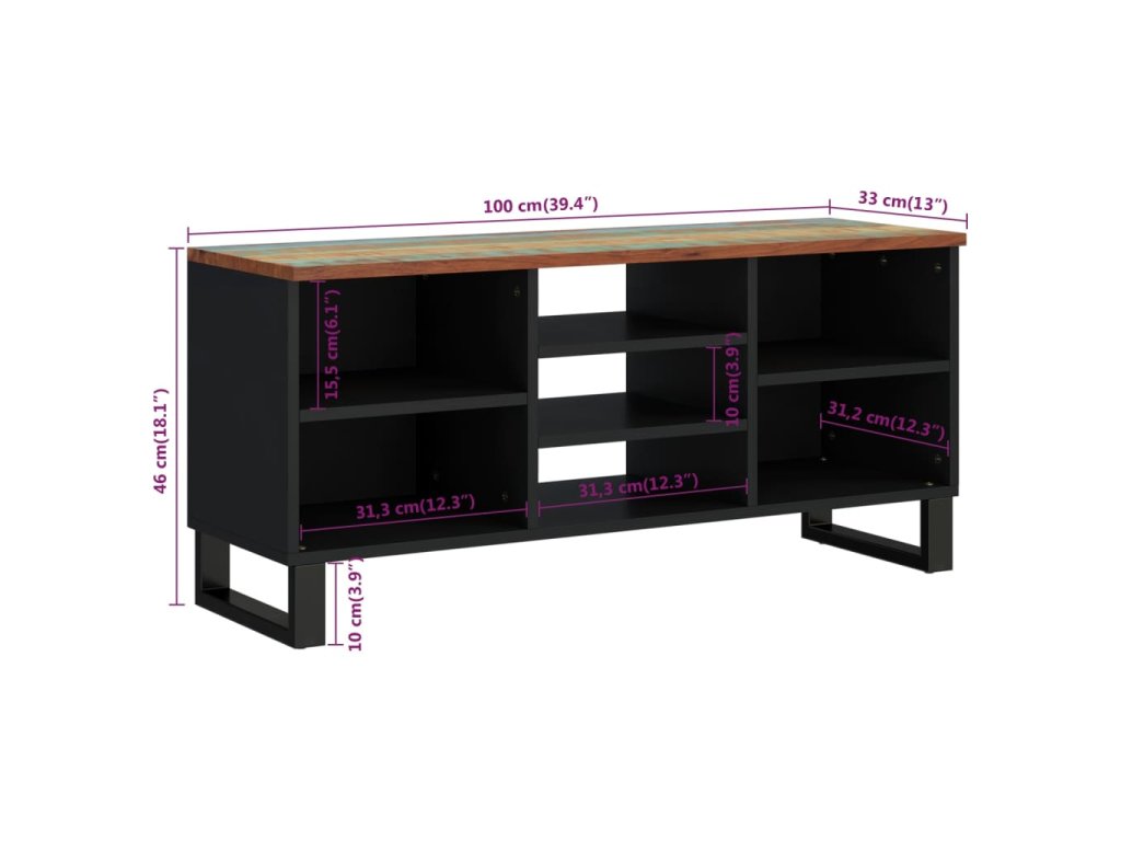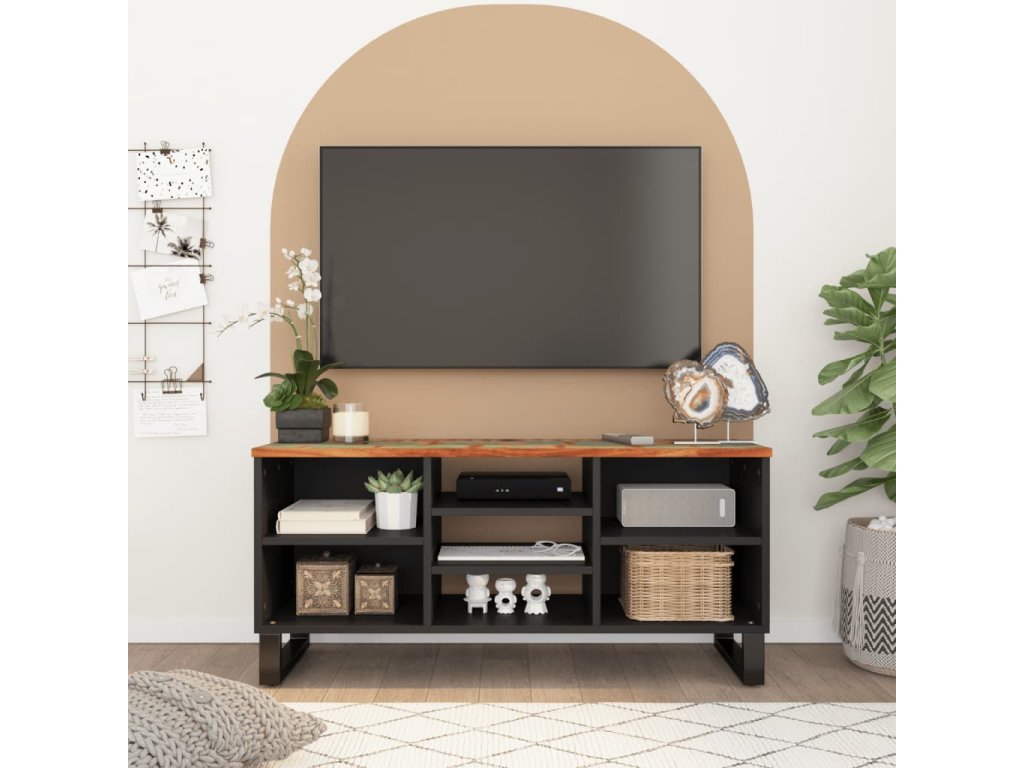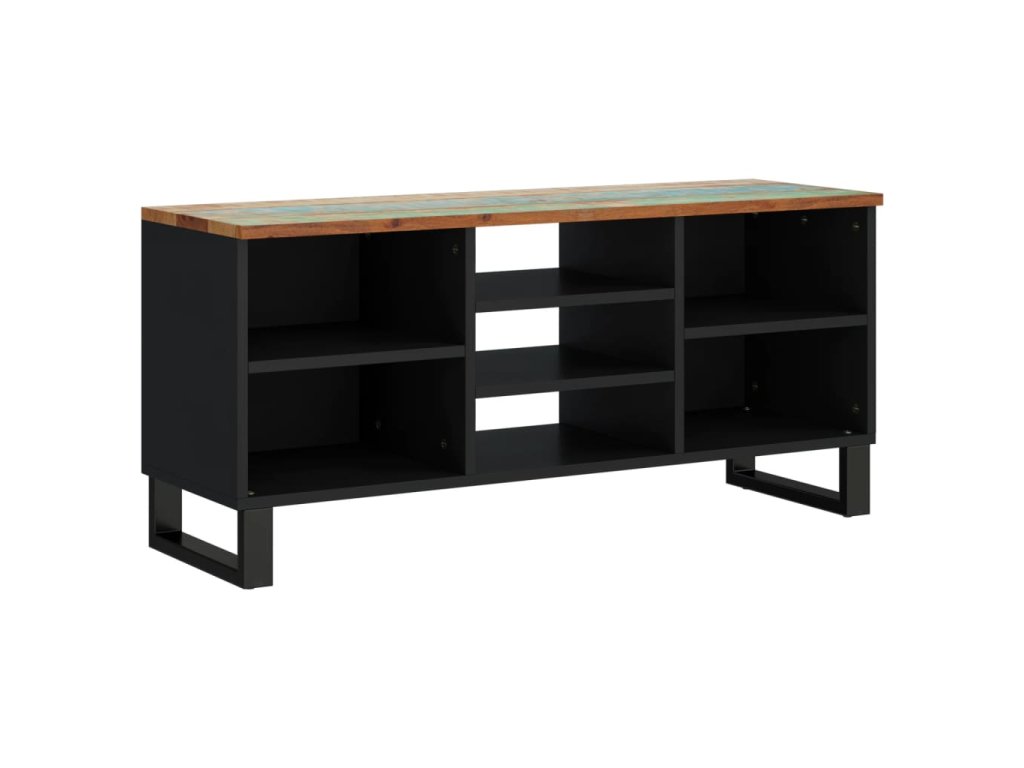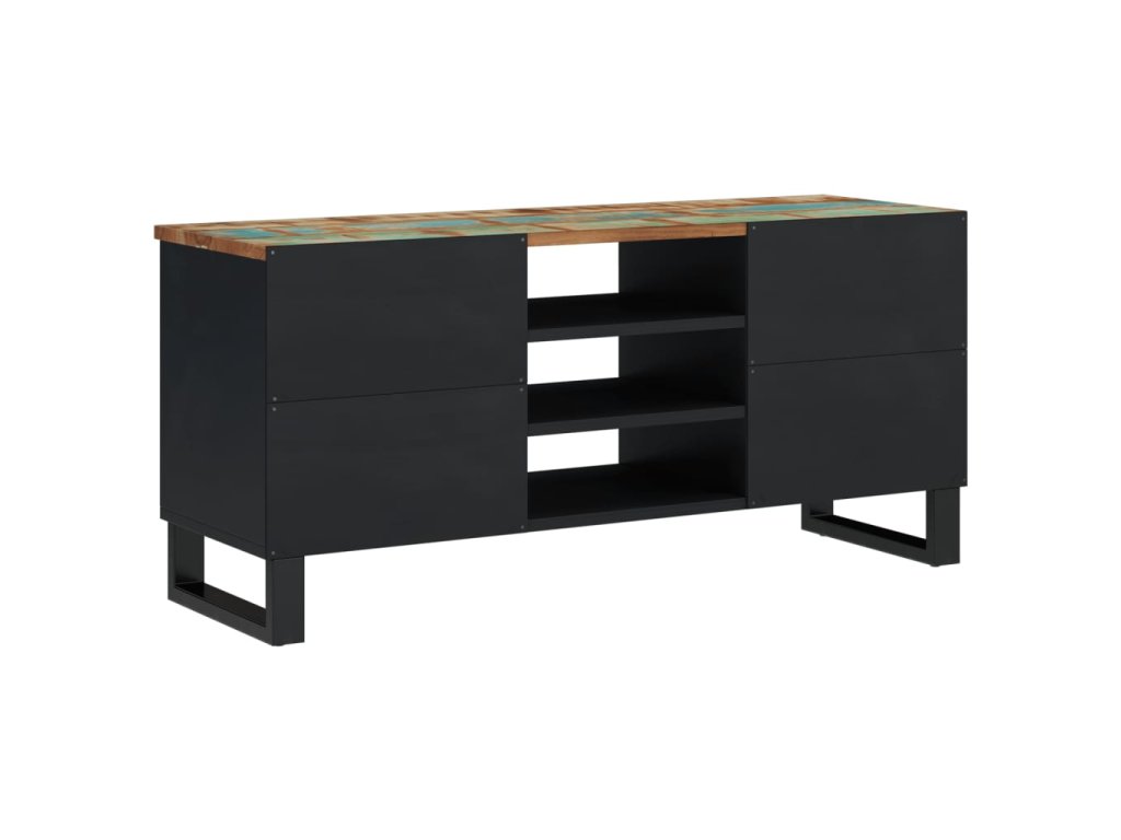 - Masívne recyklované drevo: Táto skrinka na médiá je vyrobená z masívneho recyklovaného dreva a spracovaného dreva. Masívne regenerované drevo pozostáva z opätovne použitého dreva, ako je teak, mangovníkové drevo, borovicové drevo a buk. Tieto materiály sú recyklované zo starých budov, ako sú továrne, prístrešky a lode.