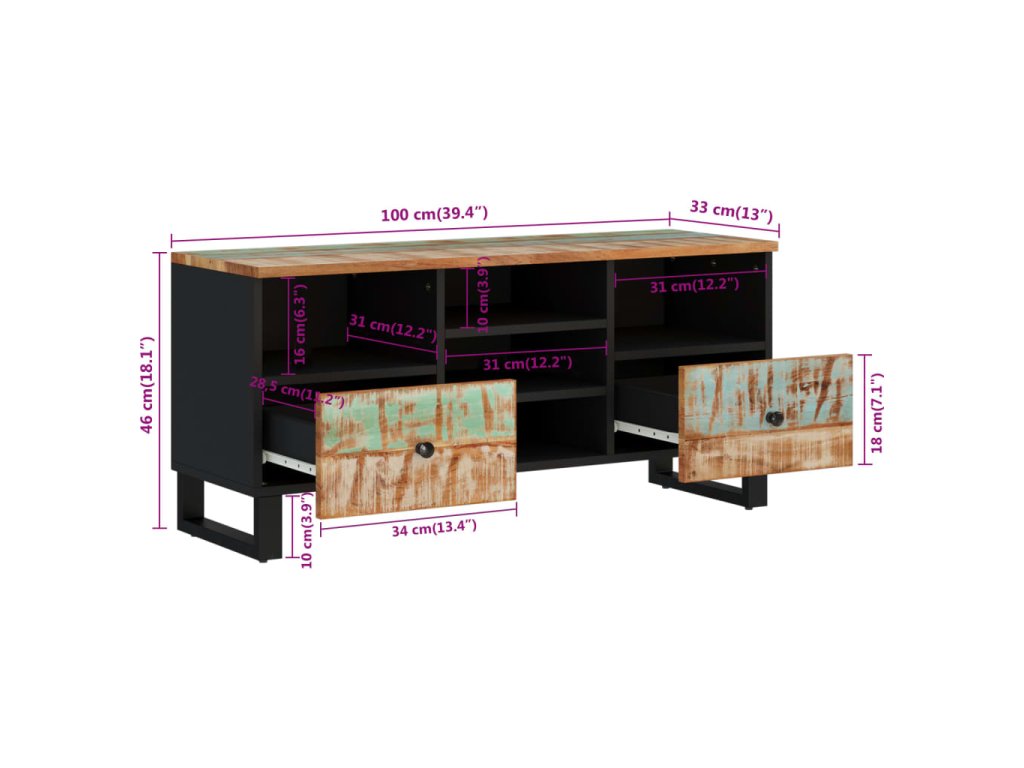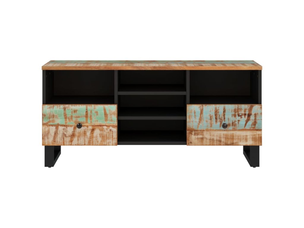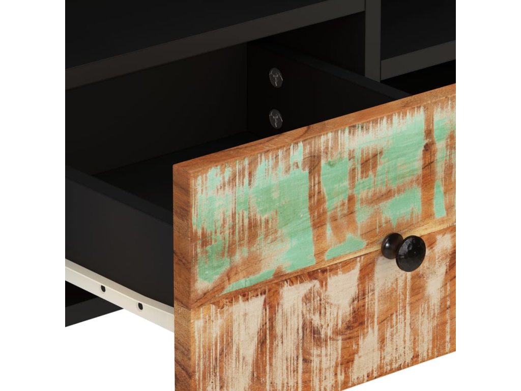 - Masívne recyklované drevo: Táto skrinka na médiá je vyrobená z masívneho recyklovaného dreva a spracovaného dreva. Masívne regenerované drevo pozostáva z opätovne použitého dreva, ako je teak, mangovníkové drevo, borovicové drevo a buk. Tieto materiály sú recyklované zo starých budov, ako sú továrne, prístrešky a lode.