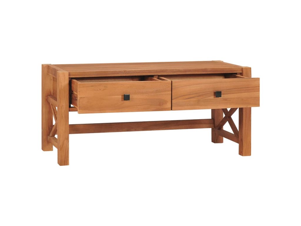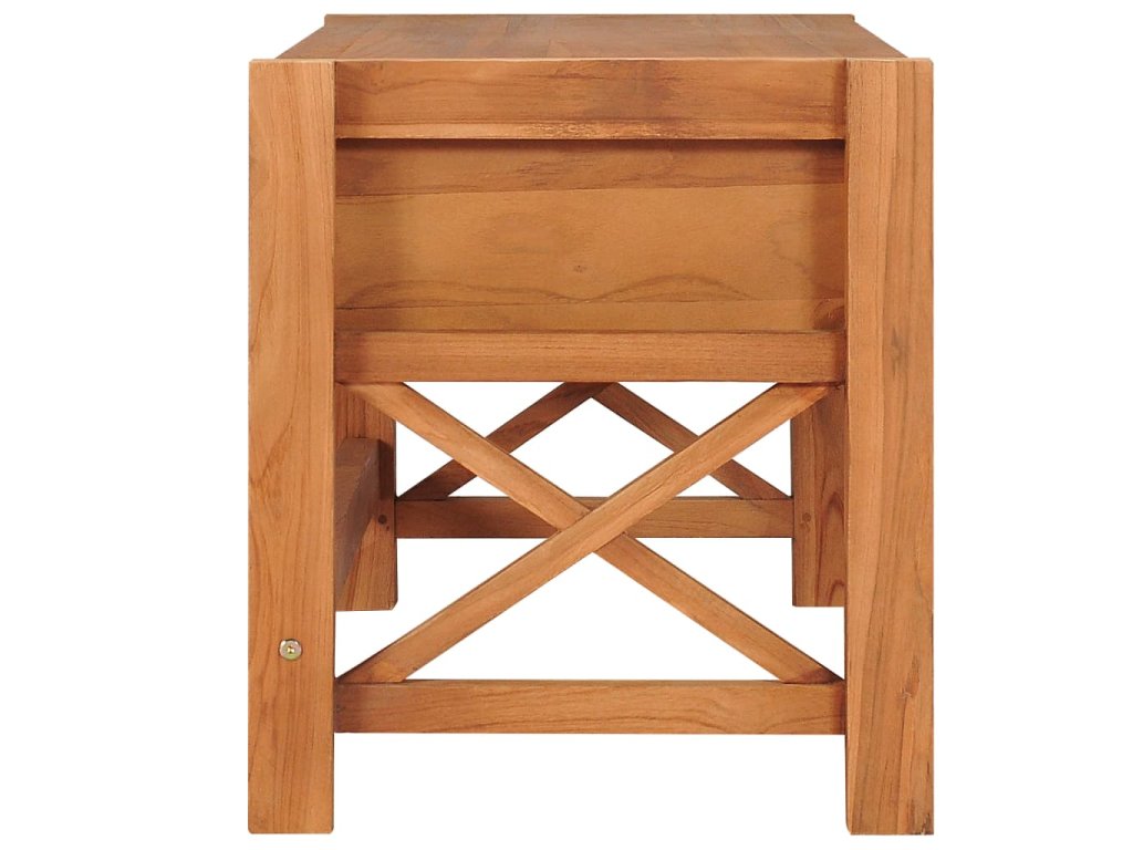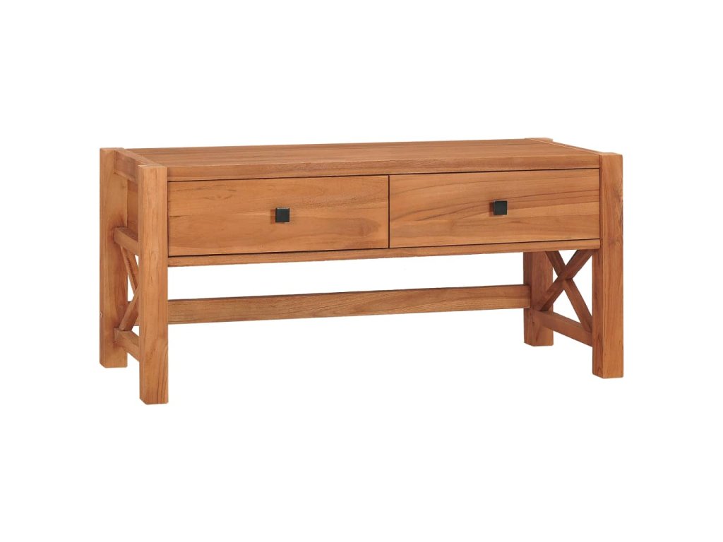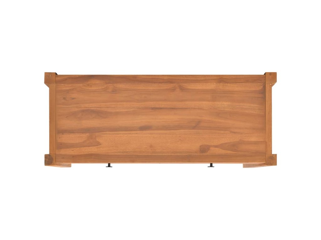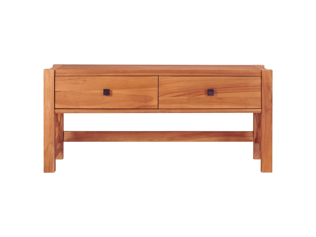 Táto TV skrinka je vyrobená z tíkového dreva, ktoré bolo umelo vysušené v sušiarni a jeho povrch bol následne jemne obrúsený, aby získal hladký vzhľad. Tíkové drevo sa vyznačuje výnimočnou pevnosťou, a tak predstavuje jeden z najvhodnejších materiálov na výrobu nábytku spomedzi všetkých ostatných druhov dreva. TV stolík má prírodnú farbu a pevnú vrchnú dosku z tvrdého dreva. Môžete si naň umiestniť televíziu, router, multimediálne zariadenia alebo si naň vystaviť dekoratívne predmety, ako sú fotorámiky, košíky s ovocím alebo vázy. Drevená skrinka na HiFi vežu má 2 zásuvky, ktoré poskytujú množstvo úložného priestoru na prehľadné odkladanie rôznych drobností, ktoré tak budete mať vždy poruke. TV nábytok je navyše trvácny a ľahko sa čistí.
