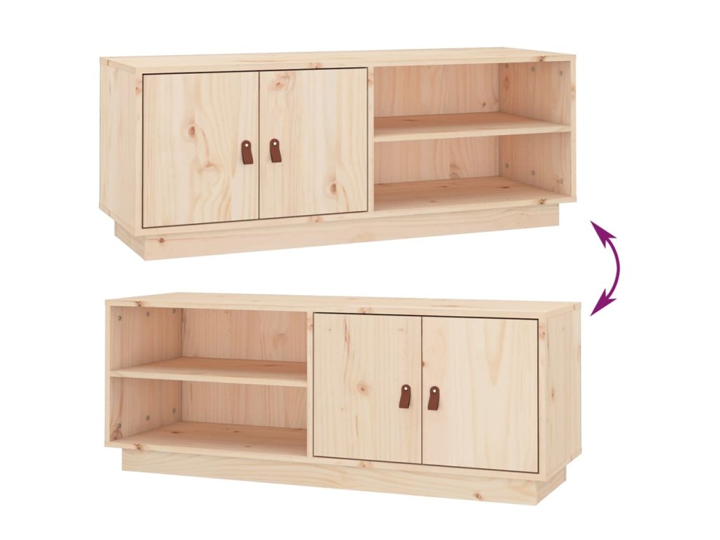 - Masívne borovicové drevo: Masívne borovicové drevo je krásny prírodný materiál. Borovicové drevo má rovnú štruktúru a uzly dodávajú materiálu jeho typický rustikálny vzhľad. Tento TV stolík je vyrobený z masívneho dreva pre extra stabilitu.