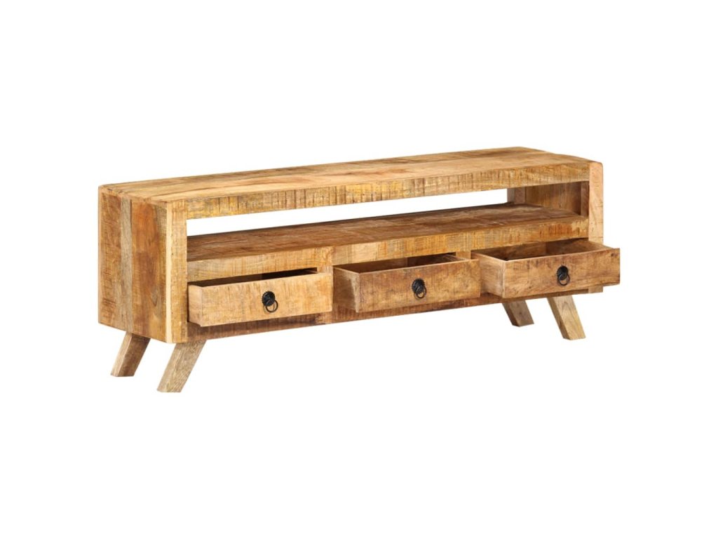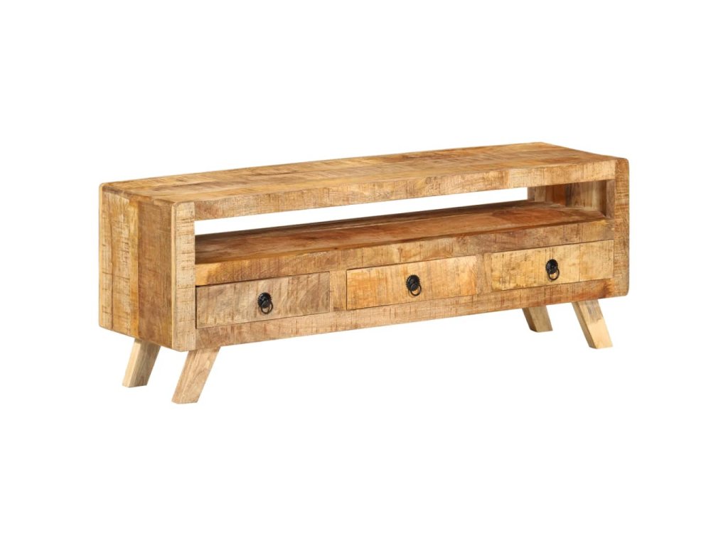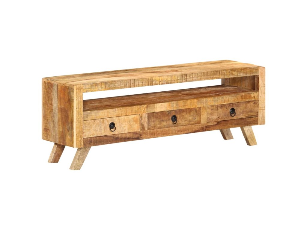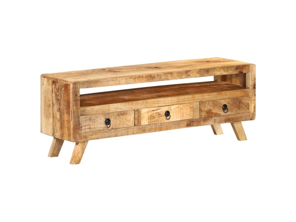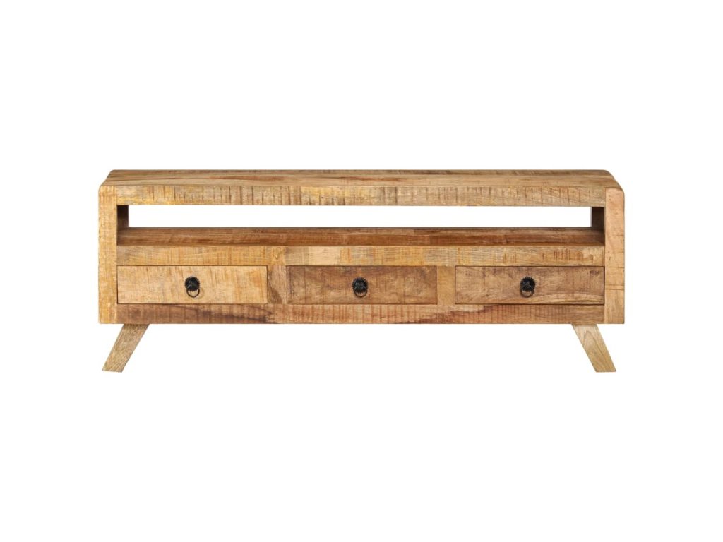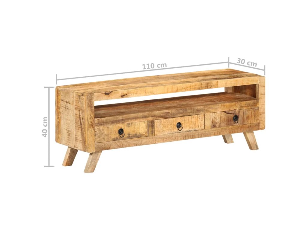 TV jednotka je vyrobená z masívneho mangovníkového dreva, je veľmi odolná a ľahko sa čistí. Známky opotrebovania a viditeľná štruktúra dodávajú každému kusu jeho vlastnú históriu a jedinečný vzhľad. Každý krok procesu výroby sa vykonáva s najväčšou starostlivosťou, či už ide o kombinovanie, leštenie, lakovanie alebo voskovanie. Je vybavená 3 zásuvkami a 1 policou, ktoré poskytnú dostatok úložného priestoru pre vaše osobné veci.