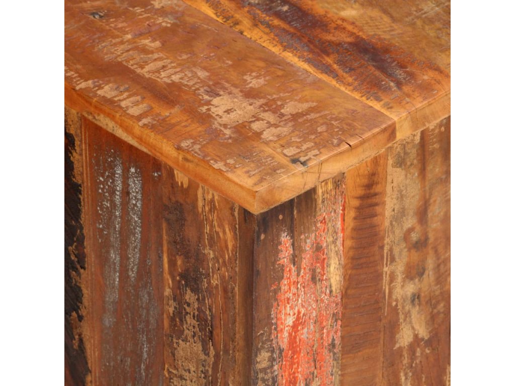 - Prémiový materiál: Masívne recyklované drevo pozostáva z opätovne použitého dreva, ako je teakové, mangovníkové drevo, borovicové drevo a bukové drevo. Tieto materiály sú recyklované zo starých budov, ako sú továrne, prístrešky a lode. To z neho robí veľmi ekologickú možnosť pri výrobe nábytku. Keďže je každý kus ručne vyrobený a má jedinečné farby, výrobky sa môžu mierne líšiť. Farby sa líšia v mnohých odtieňoch modrej, zelenej a niekedy aj oranžovej, červenej alebo ružovej.