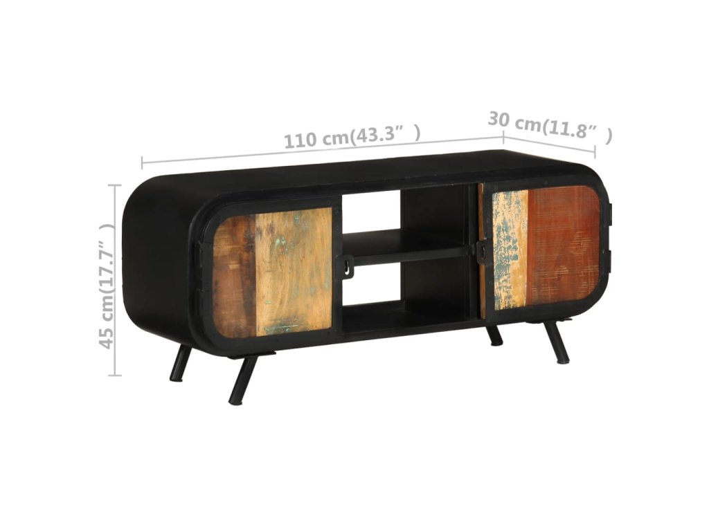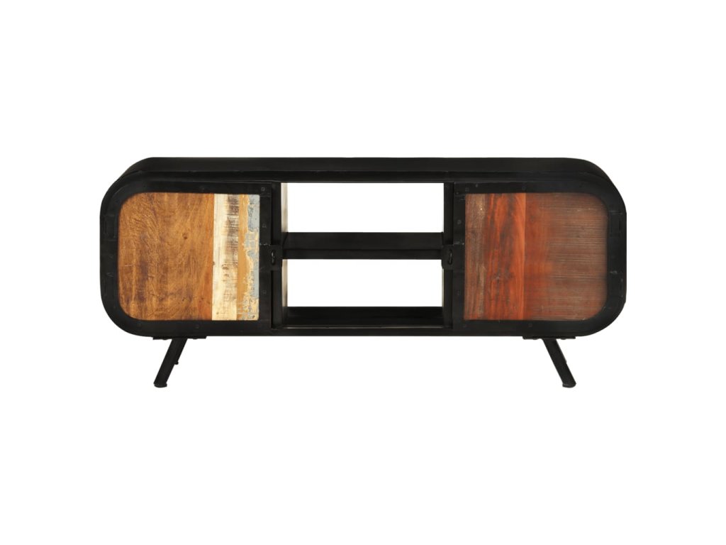 Televízny stolík je ručne vyrobený z masívneho regenerovaného dreva, kombinácie regenerovaného dreva vrátane tíkového dreva, mangového dreva, borovicového dreva, bukového dreva a podobne. Tieto drevá sú recyklované zo starých budov, ako sú továrne, kôlne a lode. Vďaka tomu ide o fantastickú ekologickú možnosť výroby nábytku. Keďže každý kus je vyrábaný ručne, farby sa líšia a objavuje sa mnoho modrých, zelených, krémových a niekedy aj oranžových, červených a ružových odtieňov. To znamená, že každý kus je jedinečný! Bočná skrinka navyše poskytuje dostatok priestoru na odkladanie multimediálnych zariadení, nosičov médií a akýchkoľvek iných predmetov.