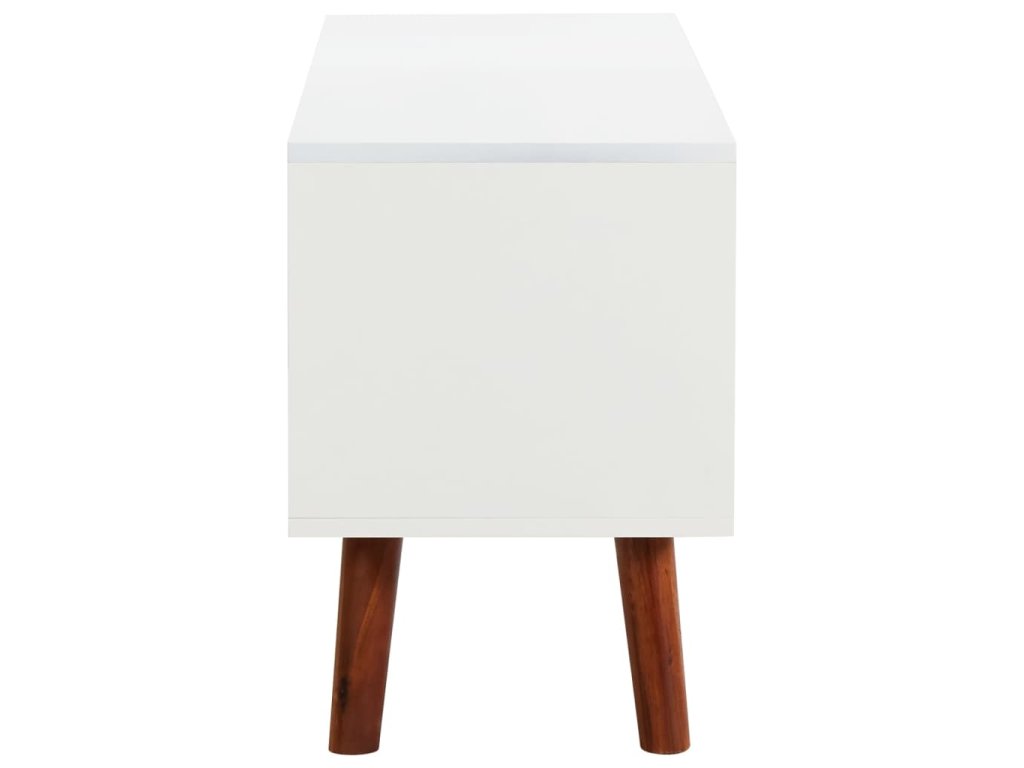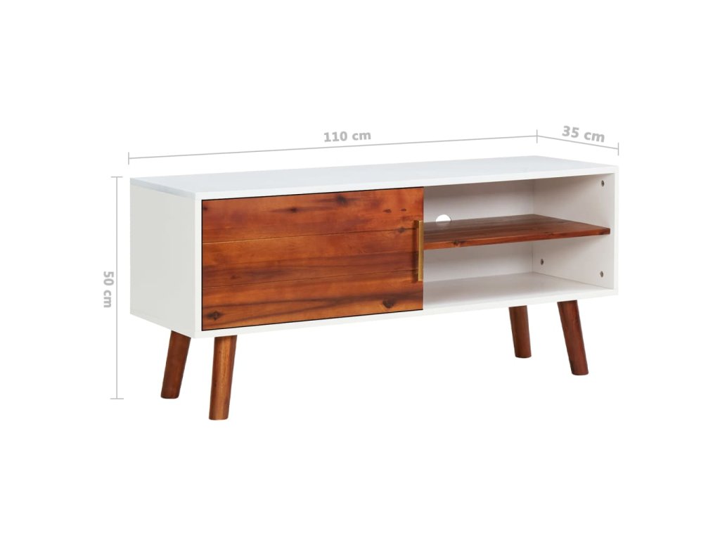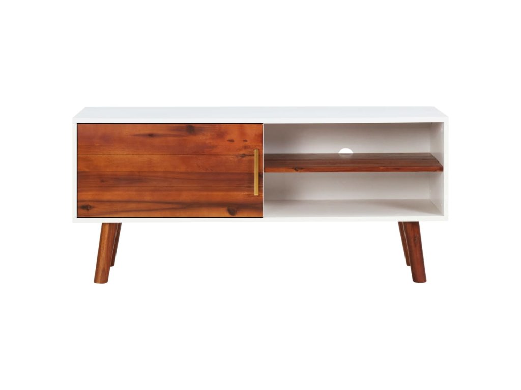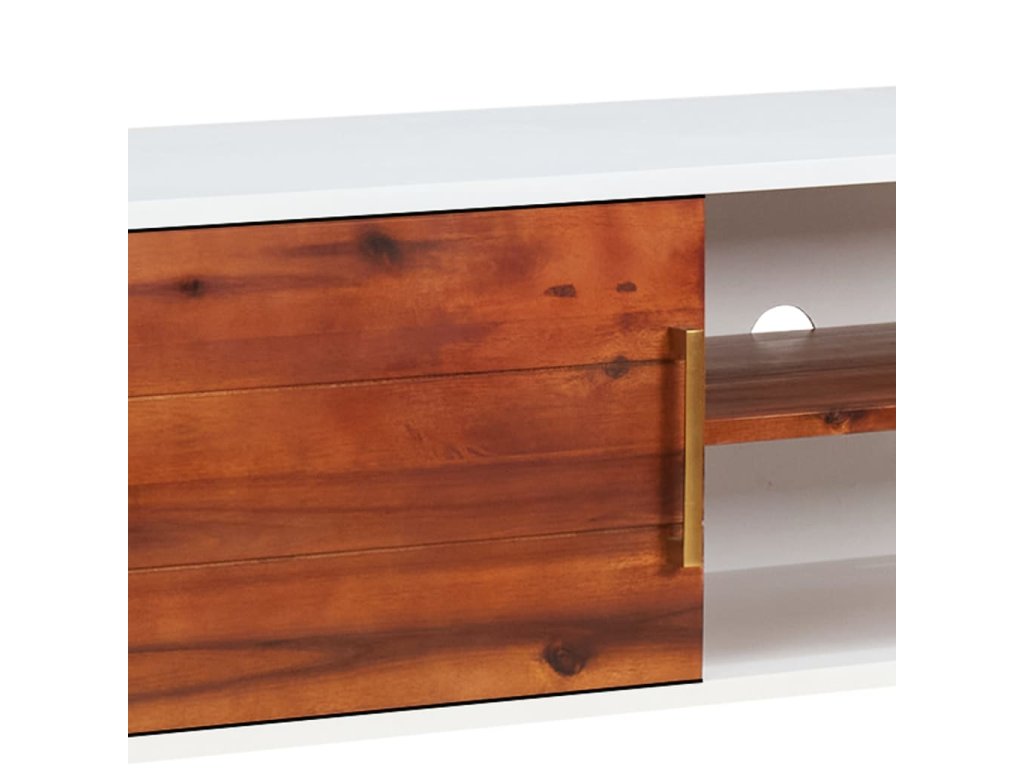 Drevený TV stojan je odborne vyrobený z masívneho dreva a MDF, vďaka čomu je veľmi odolný a trvácny. Masívne akáciové drevo je tvrdé drevo s bohatou štruktúrou. Vďaka vynikajúcemu remeselnému spracovaniu a nádhernej štruktúre dreva sa každý kúsok od seba mierne líši. Tento nízky stolík má 1 otvorenú poličku a 1 poličku vo vnútri dverí, ktoré poskytujú dostatok miesta na uloženie vašich multimediálnych spotrebičov, kníh a ďalších nevyhnutných vecí.