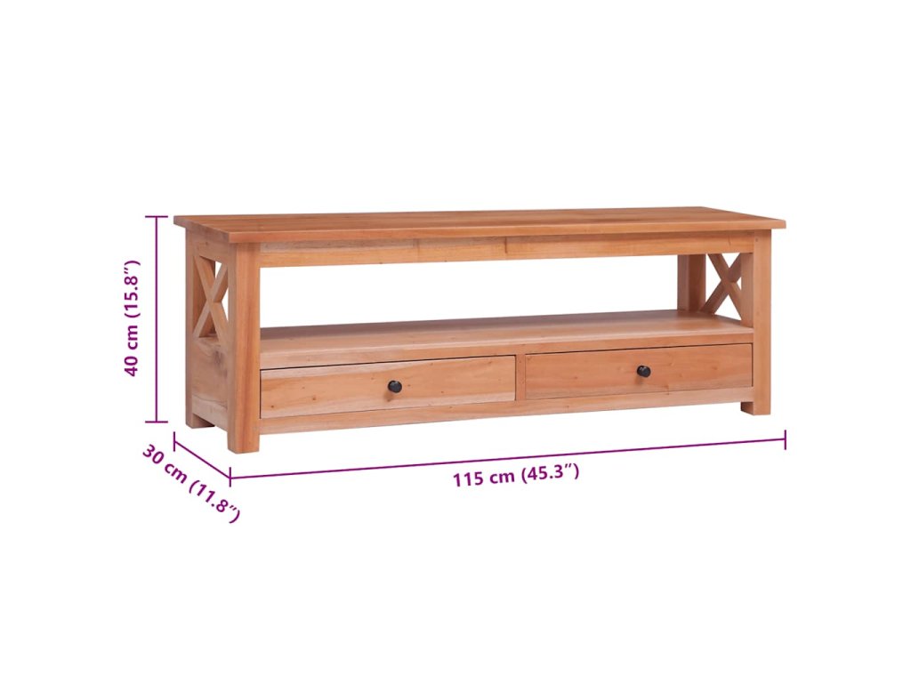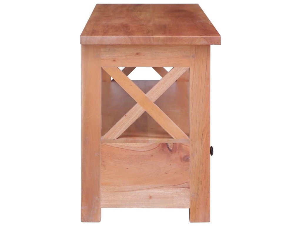 Táto skrinka na TV v štýle vintage, vyrobená z masívneho mahagónového dreva, bude nadčasovým doplnkom vášho domova. Mahagón je tropické tvrdé drevo, ktoré vyniká svojou krásou, odolnosťou a farbou. Každý krok procesu sa vykonáva s maximálnou starostlivosťou, či už ide o leštenie, maľovanie alebo lakovanie. Skrinka vybavená 2 zásuvkami a policou poskytuje dostatok úložného priestoru na prehľadné uloženie rôznych predmetov. A jedinečný krížový dizajn jej dodáva robustnosť a odolnosť.