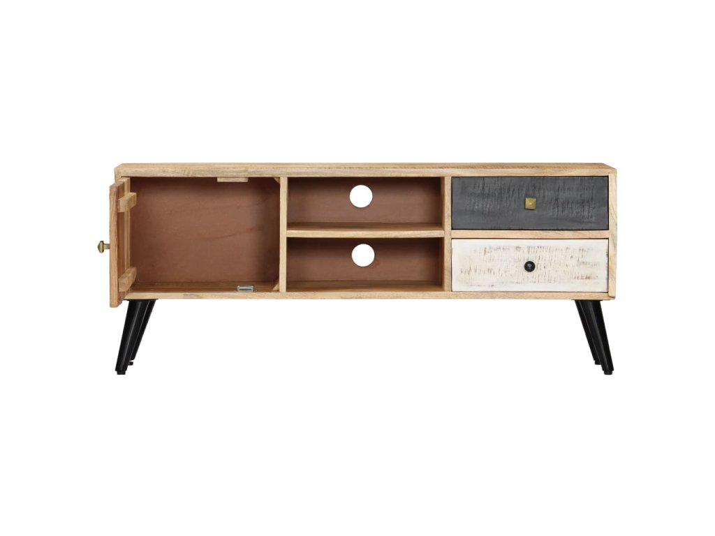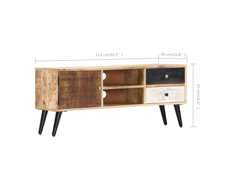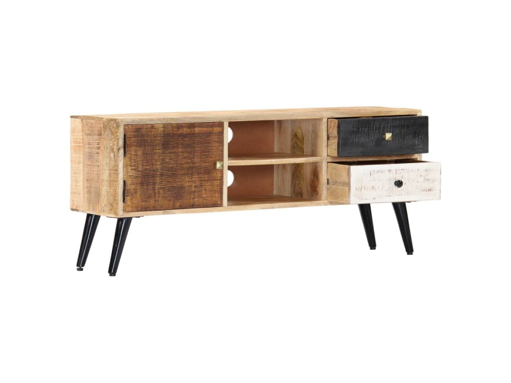 Tento TV stolík je ručne vyrobený z masívneho mangovníkového dreva, ktoré je pevné, stabilné, odolné a krásne. Remeselné prevedenie mu dodáva úžasný retro štýl. Každý krok výrobného procesu je robený s tou najväčšou starostlivosťou, či už sa jedná o leštenie, lakovanie a natieranie. Vďaka remeselnému prevedeniu a nádhernej štruktúre dreva je každý kus tohoto nábytku jedinečný a trochu odlišný od ostatných kusov.