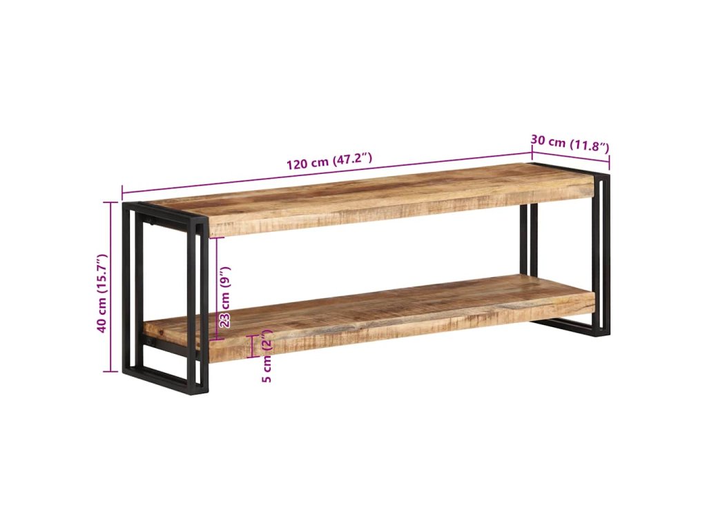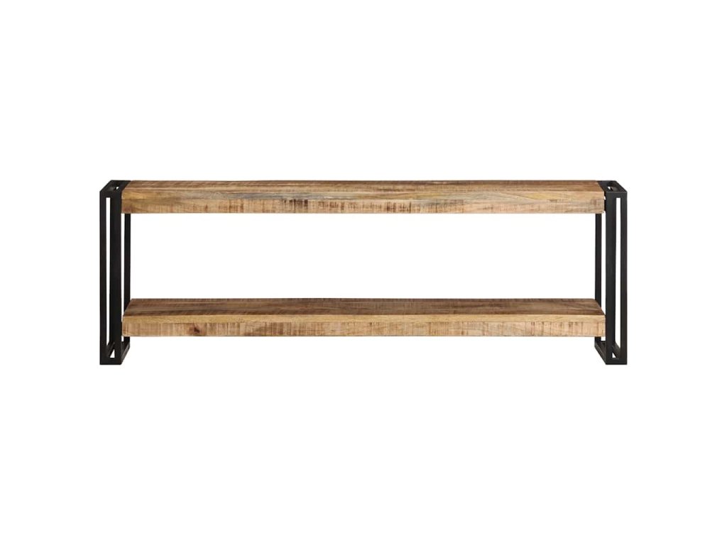 TV skrinka je vyrobená zo surového mangovníkového dreva. Je to tropické tvrdé drevo, ktoré je schopné uniesť aj vyššiu hmotnosť a je odolné voči opotrebovaniu. Skrinka je preto stabilná a odolná. Pevná vrchná doska sa dá použiť na odloženie vašich dekoratívnych predmetov. Polica tiež poskytuje dostatok priestoru na uloženie vašich multimediálnych spotrebičov, kníh a rôznych ďalších vecí.